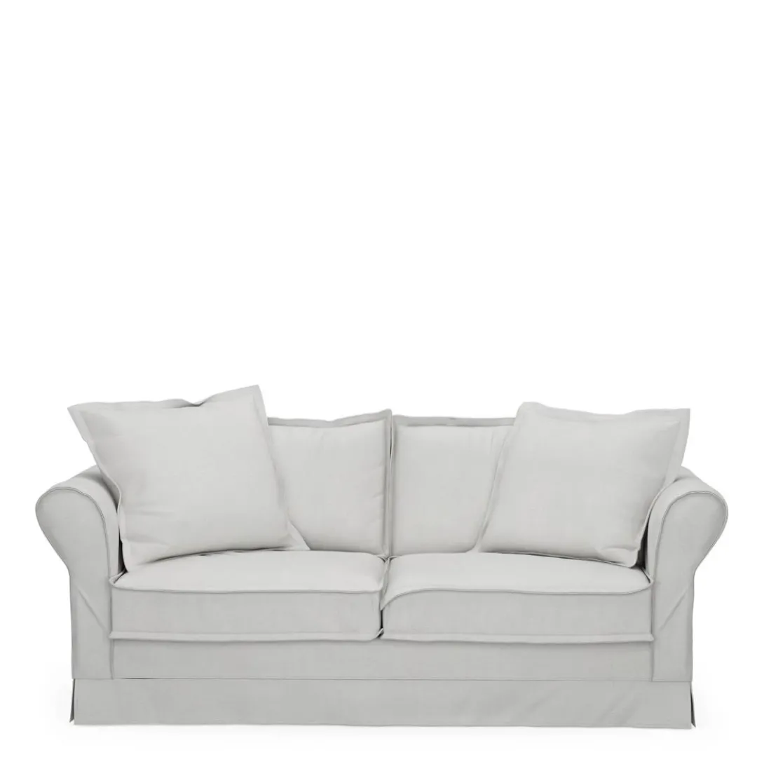 Een ideale maat voor in de zithoek. Meestal wel plaats voor drie personen, op zo’n 2,5-zits bank. En toch niet de volle 3-zits bank. Deze bank heeft een beukenhouten onderstel en de bekleding is van katoen, washed cotton. Die gewassen stof is er in vijf kleuren, en u moet bij een vlek voorzichtig deppen met een droge doek, om daarna met een vochtige doek de vlek te verwijderen.
