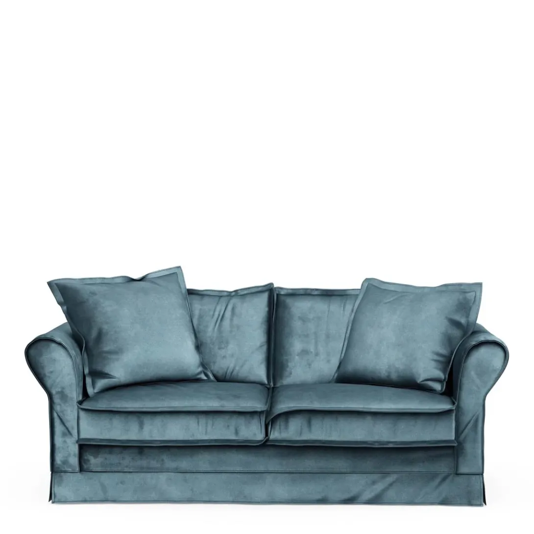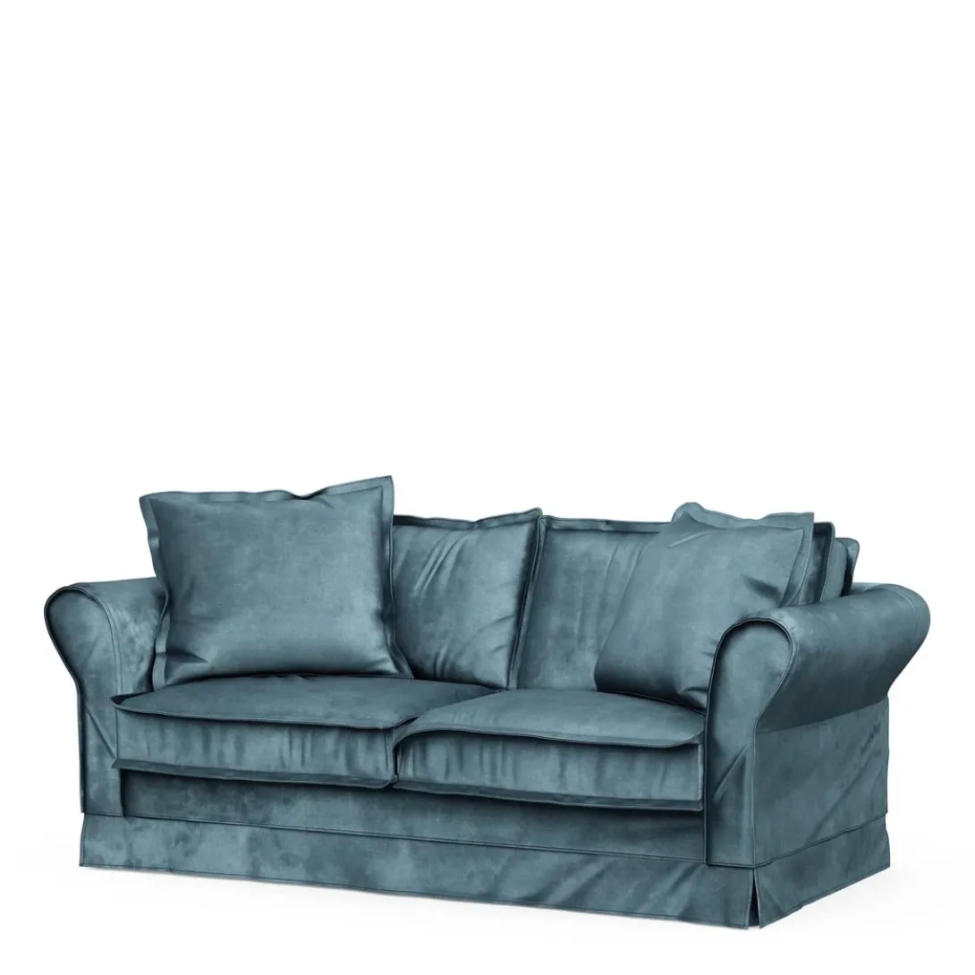 De Carlton Sofa is een echte relaxbank. De diepe zit, de talloze kussens en de velvet bekleding maken de sofa tot een comfortabel zitmeubel, waar u maar al te graag op plaatsneemt. Naast de vaste kussens, wordt de bank geleverd met twee losse kussens in een gelijke kleur en stoffering. Verkrijgbaar in verschillende kleuren.
