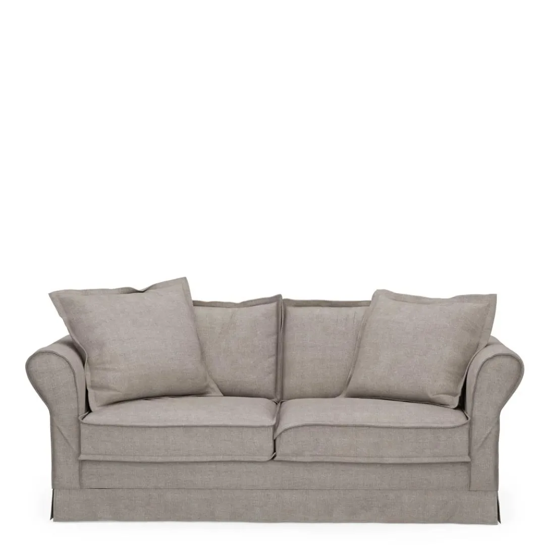 Een ideale maat voor in de zithoek. Meestal wel plaats voor drie personen, op zo’n 2,5-zits bank. En toch niet de volle 3-zits bank. Deze bank heeft een beukenhouten onderstel en de bekleding is van katoen, washed cotton. Die gewassen stof is er in vijf kleuren, en u moet bij een vlek voorzichtig deppen met een droge doek, om daarna met een vochtige doek de vlek te verwijderen.