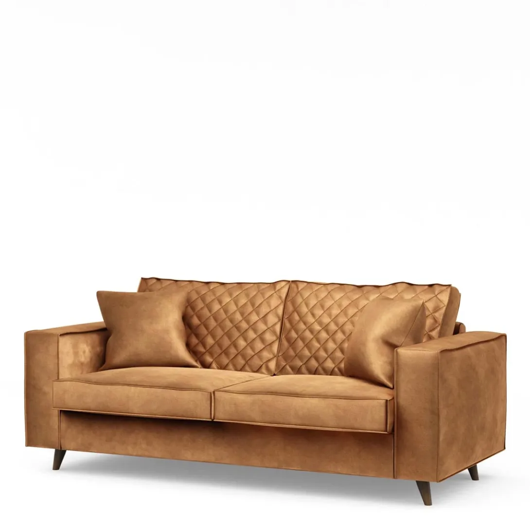 Dit is een fijne tweeënhalfzitter, waar zeker met twee, maar een beetje knus ook met zijn drieën op kan worden gezeten. Heel praktisch wanneer er visite over de vloer komt. De bank heeft een strakke vormgeving, met speelse ronde, schuin weglopende pootjes. De bekleding is van zacht velvet. Deze sofa is verkrijgbaar in verschillende formaten en uitvoeringen.