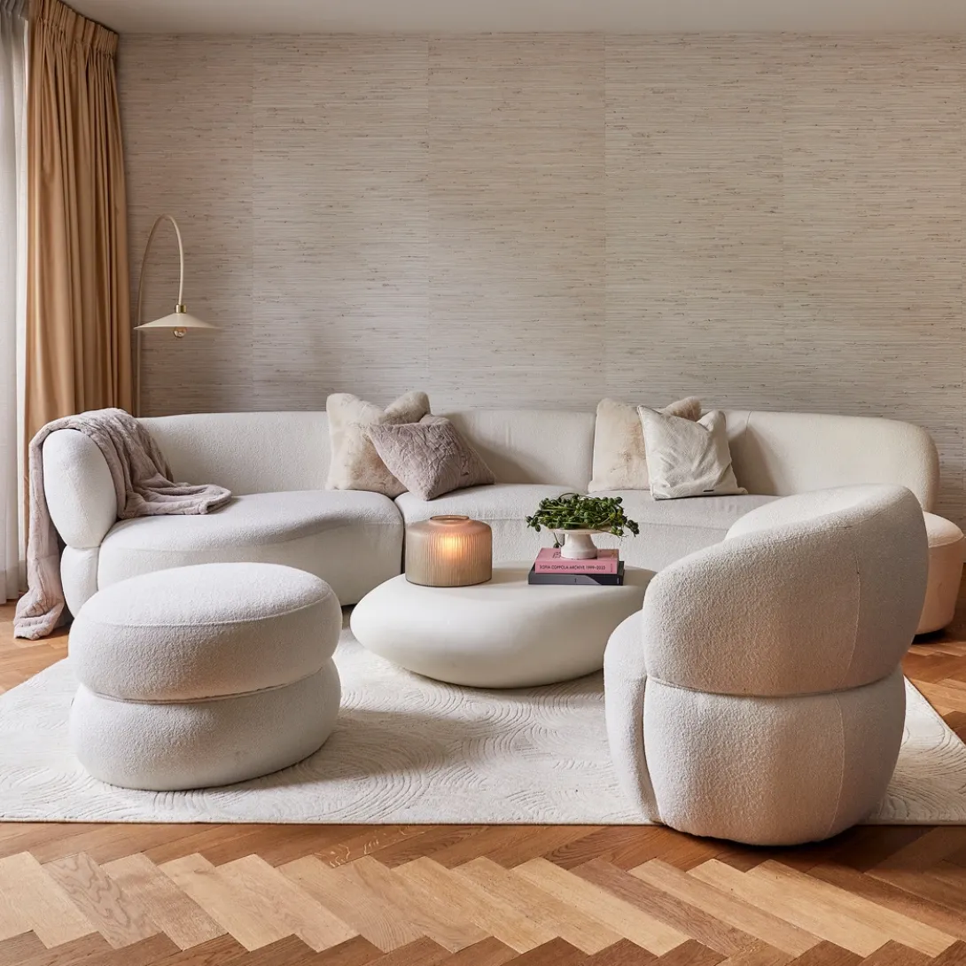 Creëer jouw ultieme ’thuis’ met de modulaire San Remo 2.5 zits Bank met de armleuning rechts. Bestaande uit een lounger en een corner. Het design van deze sofa is bedacht en ontworpen in samenwerking met Anna Nooshin. Deze rijke Bouclé stof in de kleur Simply White geeft de bank een moderne look en de organische vormen van de elementen maken dit een uniek design! Lounge en leef comfortabel en met de fauteuil en voetstoel te combineren maakt dit de chique look compleet. *Ook verkrijgbaar in de kleur Natural Grey