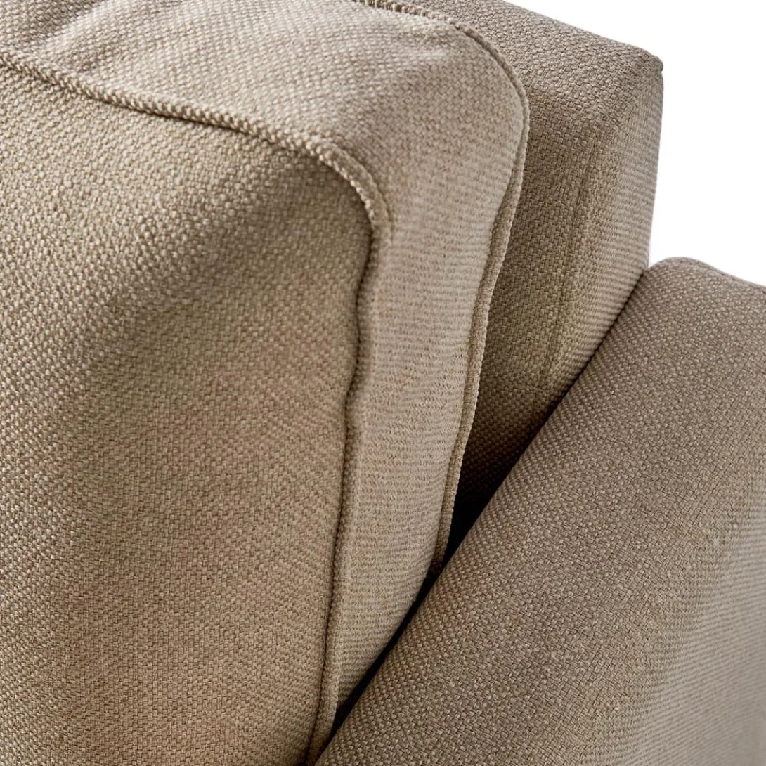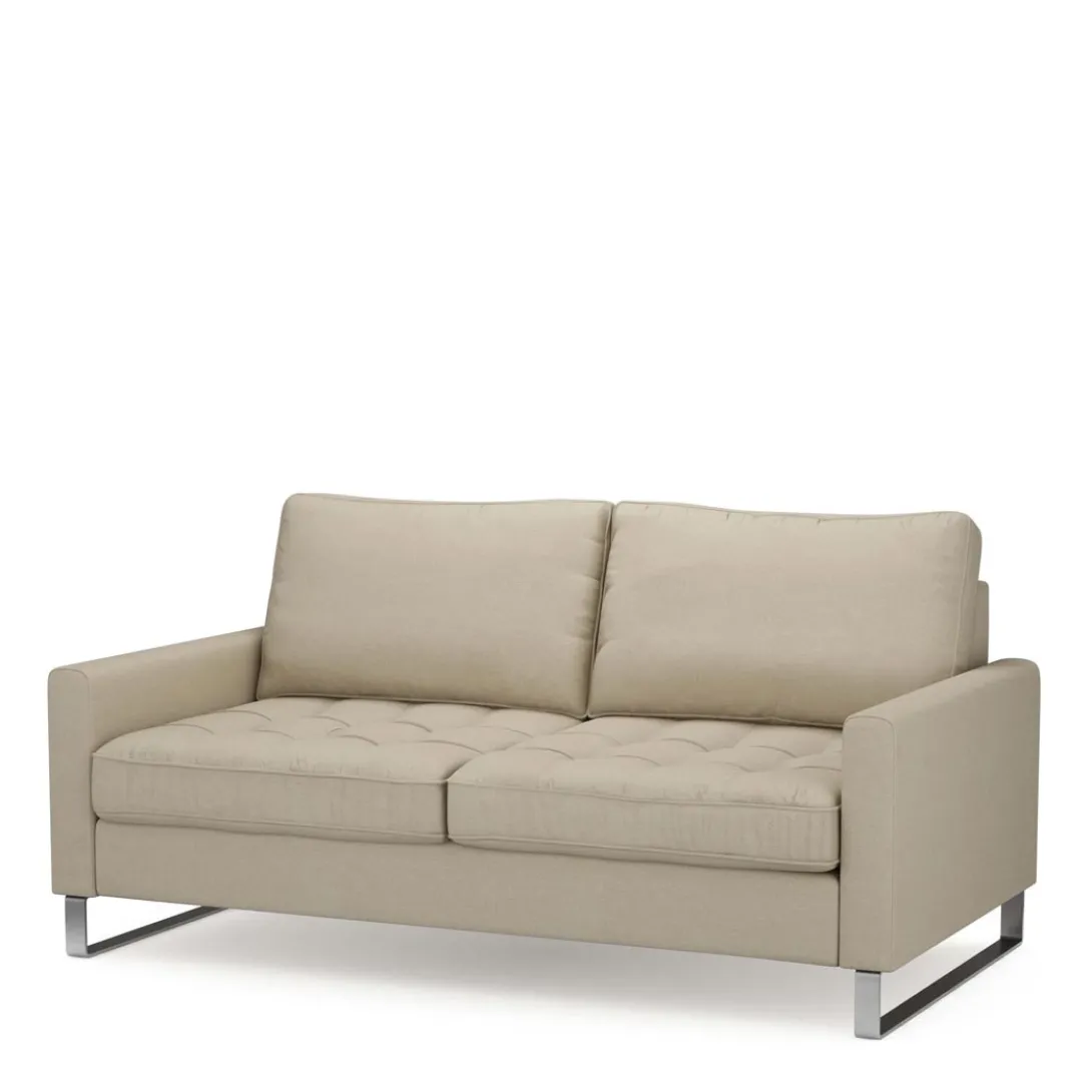 Een stoere bank op ijzeren poten, een 2,5-zitter, maar plaats voor 3 als de zitvlakken niet te breed zijn. Hij is stoer, hij is stevig en hij zit heel lekker. Gemaakt van beukenhout, polyester en ijzer. Vlekken kunnen voorzichtig met de hand worden weggehaald. Er zijn verschillende kleuren en materialen voor de bekleding beschikbaar. De maat: 170 x 90 x 85 cm.