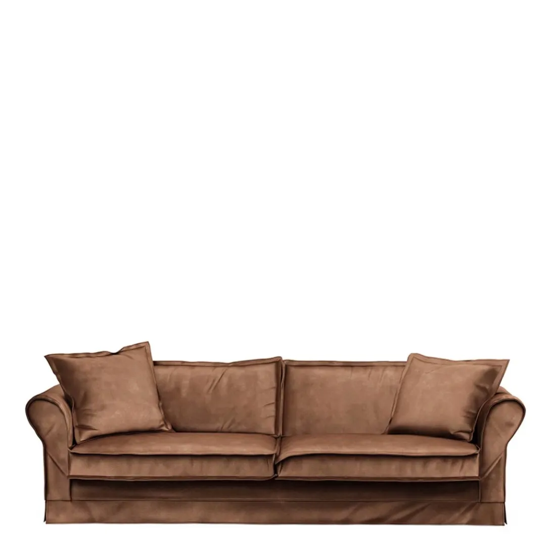 Deze royale bank ziet er door zijn velvet stoffering erg chic uit. Hoe het licht erop valt, bepaalt hoe donker of hoe licht de bank er voor het oog uitziet. Strijk met uw hand over de stof en zichtbare sporen van het zitten verdwijnen als sneeuw voor de zon. Vlekken verwijdert u eenvoudig met een licht vochtige doek. Verkrijgbaar in verschillende kleuren.