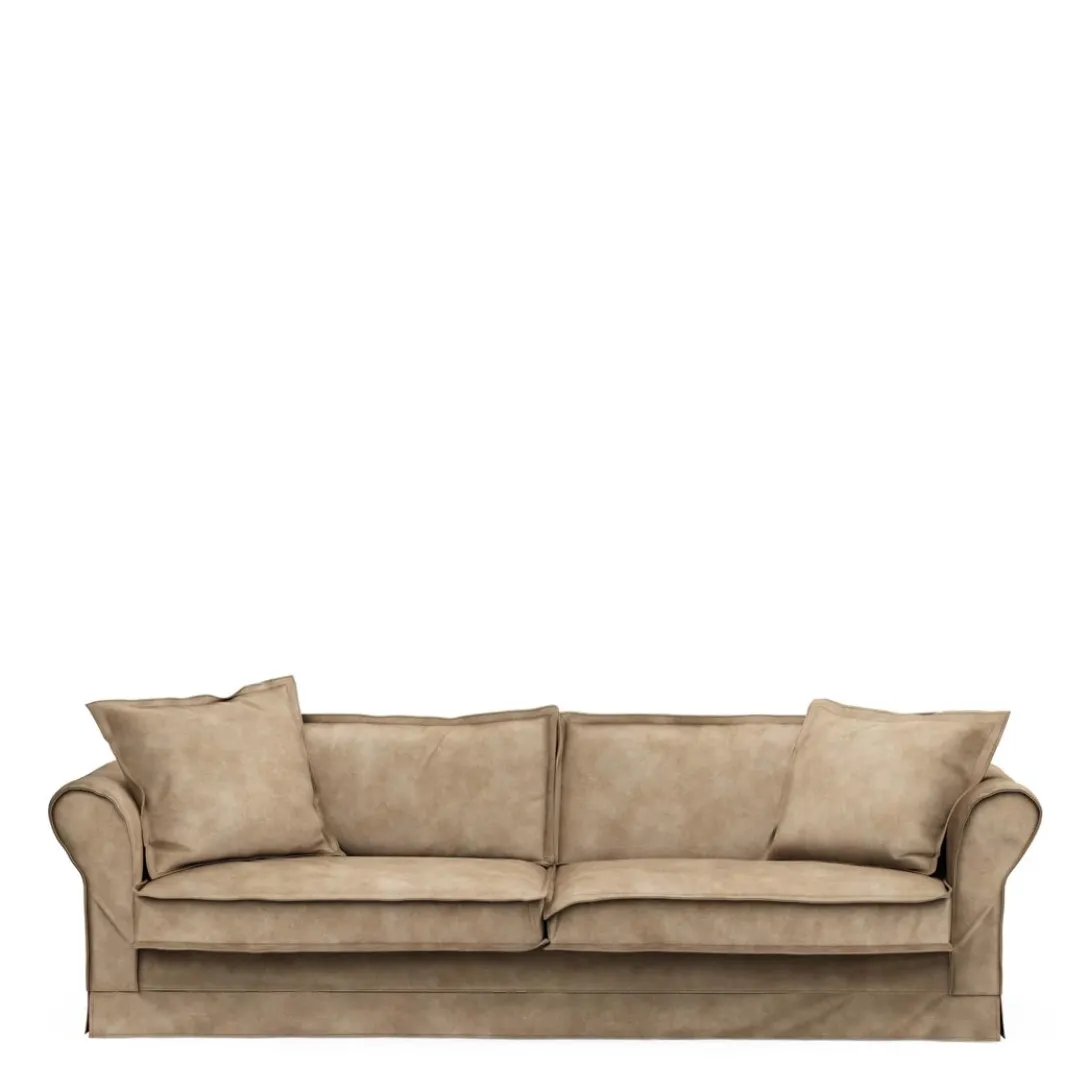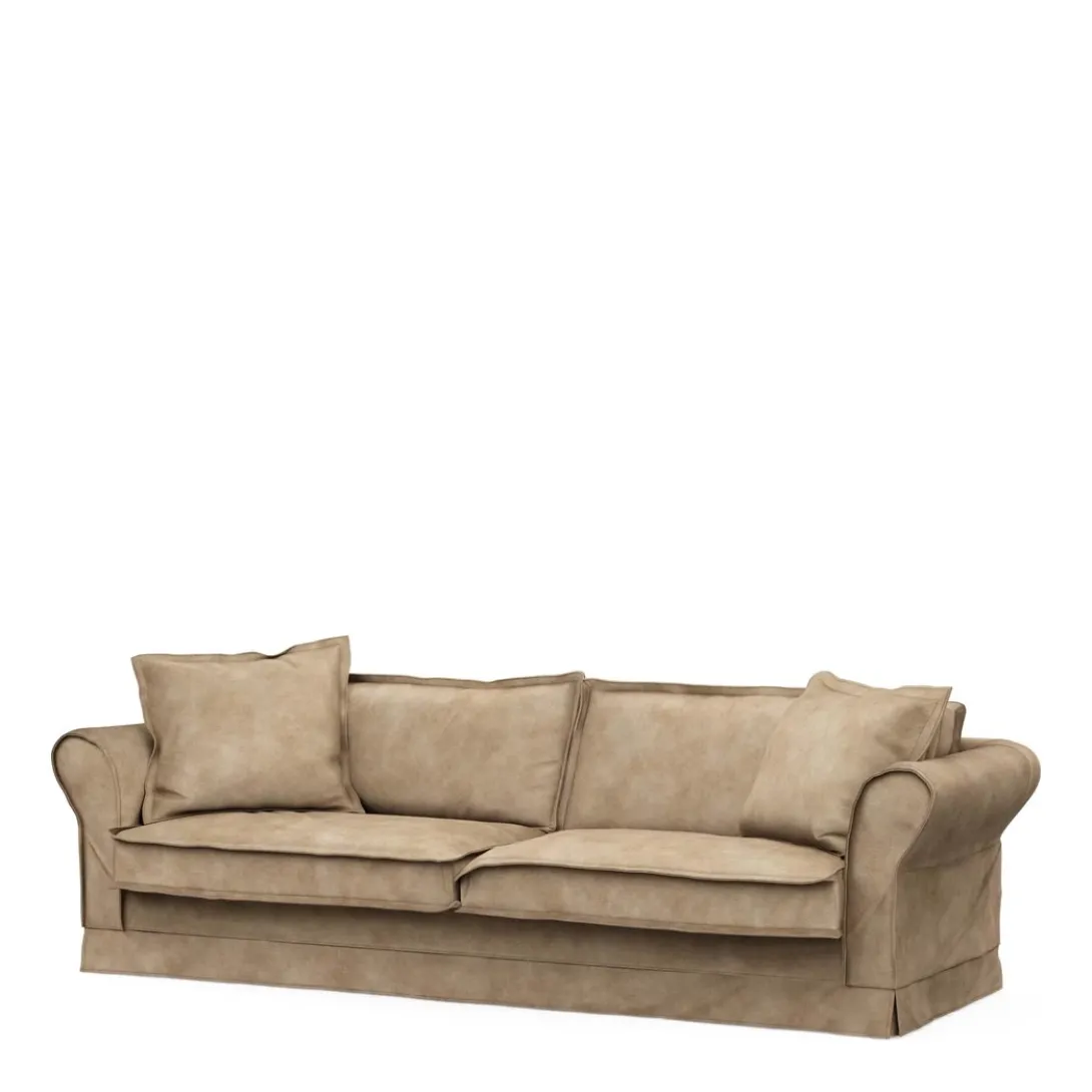 Deze royale bank ziet er door zijn velvet stoffering erg chic uit. Hoe het licht erop valt, bepaalt hoe donker of hoe licht de bank er voor het oog uitziet. Strijk met uw hand over de stof en zichtbare sporen van het zitten verdwijnen als sneeuw voor de zon. Vlekken verwijdert u eenvoudig met een licht vochtige doek. Verkrijgbaar in verschillende kleuren.