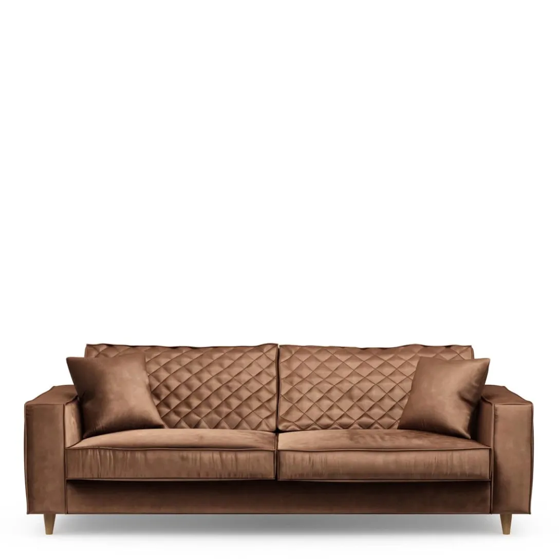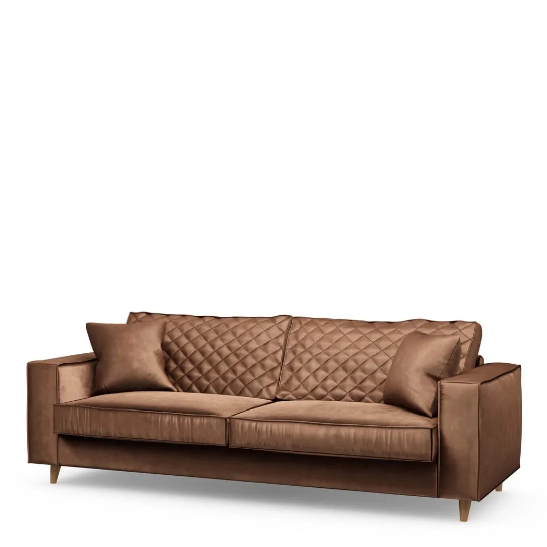 Wie eenmaal is neergestreken op de ‘Kendall’ sofa, die zal niet graag meer omhoog komen, zo prettig en zacht zit deze bank. De bijzondere vering bepaalt de stevigheid van de zitting, het zachte comfort komt van het dikke schuim dat in de kussens zit. Om de sofa af te maken is de hele bank bedekt met zacht velvet.