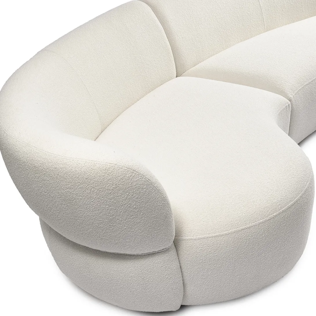 Dare to be bold, creëer met de modulaire San Remo 3.5 zits Bank met de armleuning links. Bestaande uit een lounger, center en een corner. Het design van deze sofa is bedacht en ontworpen in samenwerking met Anna Nooshin. Deze rijke Bouclé stof in de kleur Simply White geeft de bank een moderne look en de organische vormen van de elementen maken dit een uniek design! Lounge en leef comfortabel en met de fauteuil en voetstoel te combineren maakt dit de chique look compleet. *Ook verkrijgbaar in de kleur Natural Grey