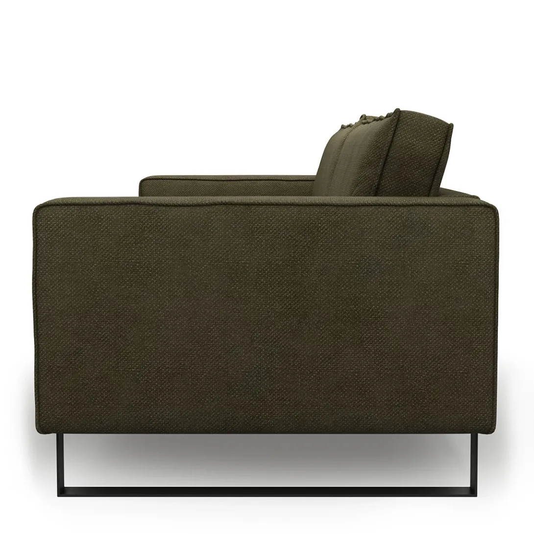 De Scott Sofa is een moderne 3,5 seater. Deze bank kenmerkt zich door de strakke lijnen van de rug- en armleuningen die op gelijke hoogte doorlopen. Tegen de rug zijn twee losse kussen geplaatst, waardoor je kunt spelen met de zitdiepte van de bank.