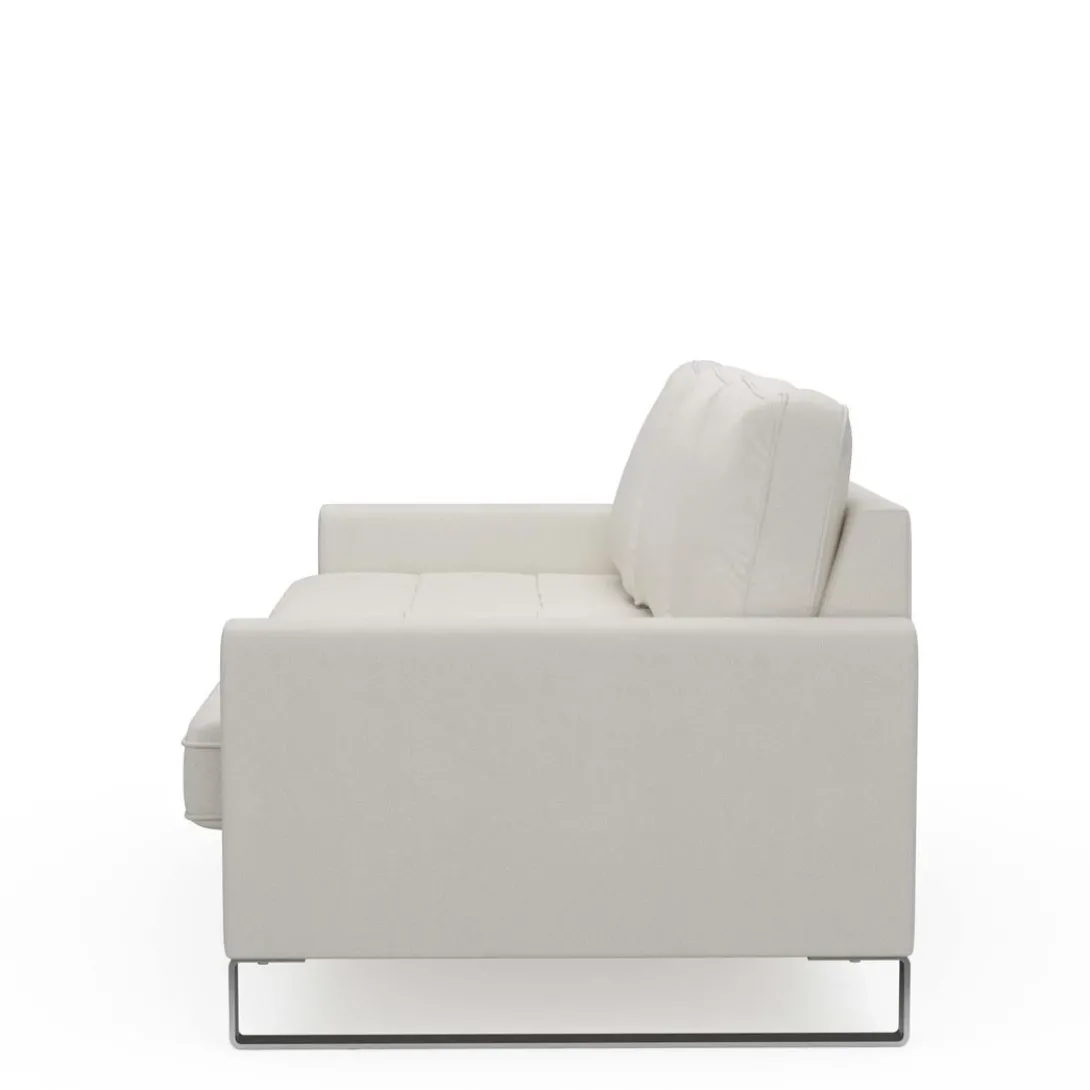 Heerlijk, zo’n grote bank waar met gemak een heleboel kleine mensjes in kunnen. Of 4 volwassenen, in goed ‘overleg’. Kerstfeestje, verjaardagen, het kan allemaal. De bank heeft een robuuste uitstraling, terwijl hij toch lekker zit. Hij is gemaakt van beukenhout, polyester en ijzer (de poten bijvoorbeeld). Voor de bekleding zijn verschillende materialen en kleuren beschikbaar. De bank is 240 x 90 x 85 cm groot.