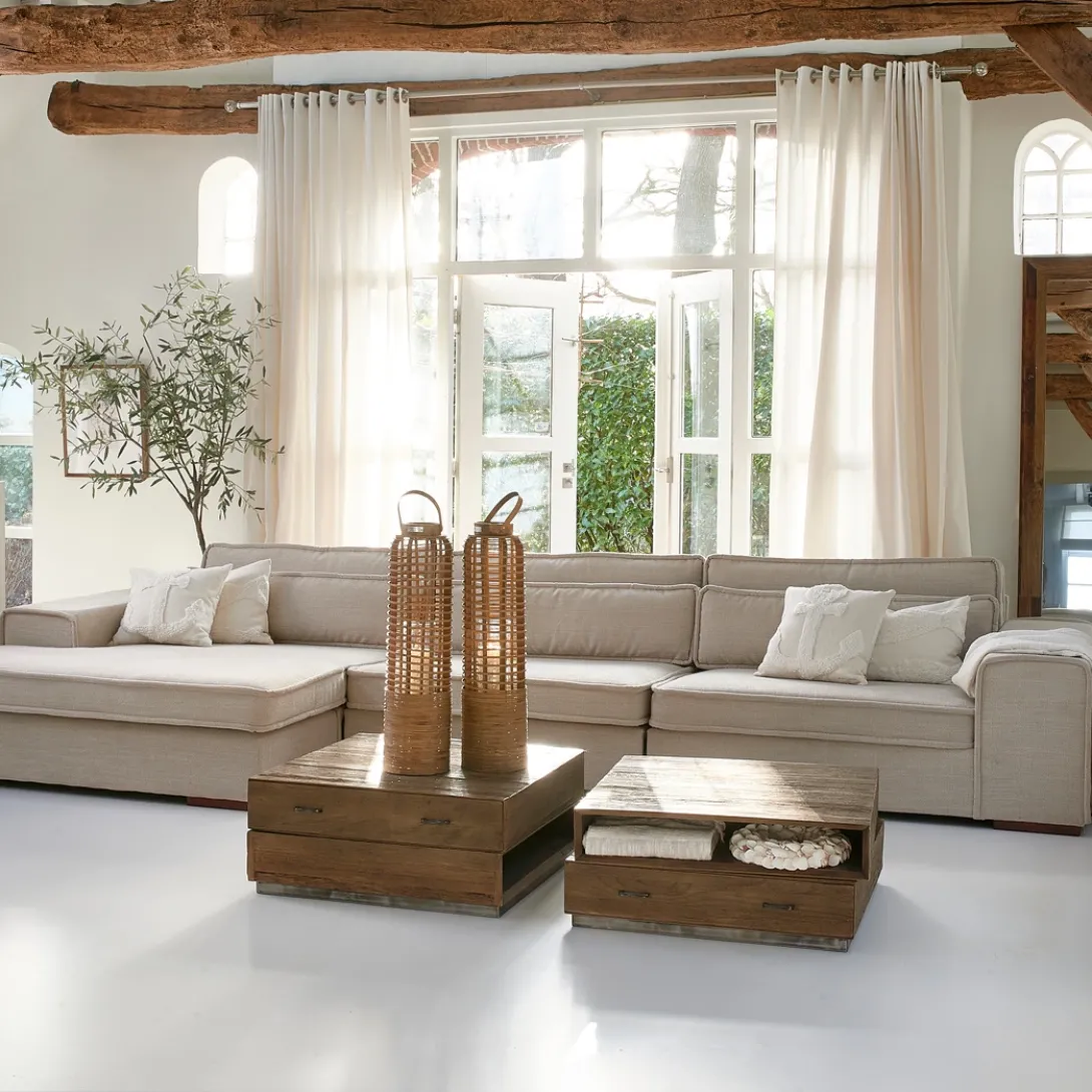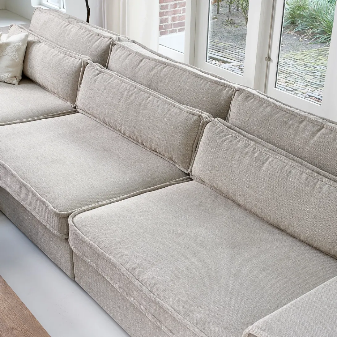 Hoe je de Onassis XL Sofa inricht, bepaal je zelf. Leg het brede en diepe loungekussen aan de linker- of rechterkant, net wat je voorkeur heeft. Het is een heerlijke loungebank, met een diepe zit, die je zelfs als extra bed kunt gebruiken als je gasten iets langer willen blijven. De Onassis XL Sofa is verkrijgbaar in verschillende kleuren en stofferingen.