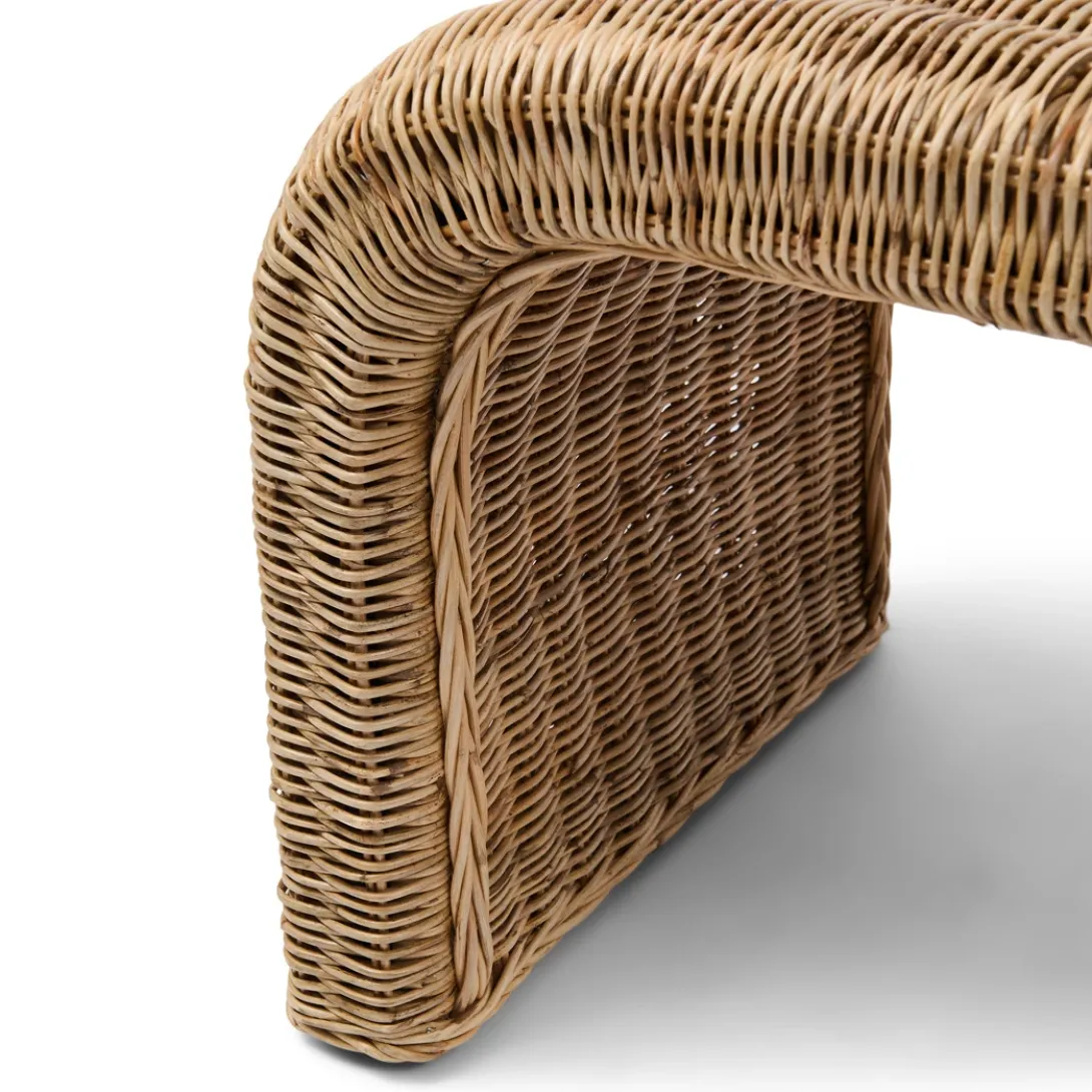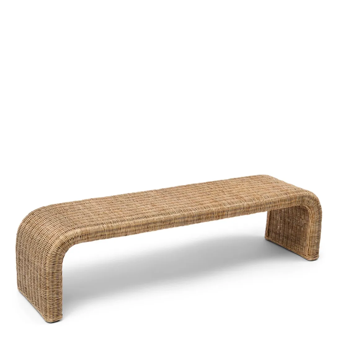 Creëer een warme en gastvrije sfeer met dit prachtige bankje. Het geweven rattan en het slanke ontwerp maken het perfect voor in de gang, als sfeervolle plek om schoenen aan te trekken, of als stijlvolle extra zitplaats in de woonkamer. Een charmante balans tussen functionaliteit en natuurlijke schoonheid, ideaal voor een gezellig huis.