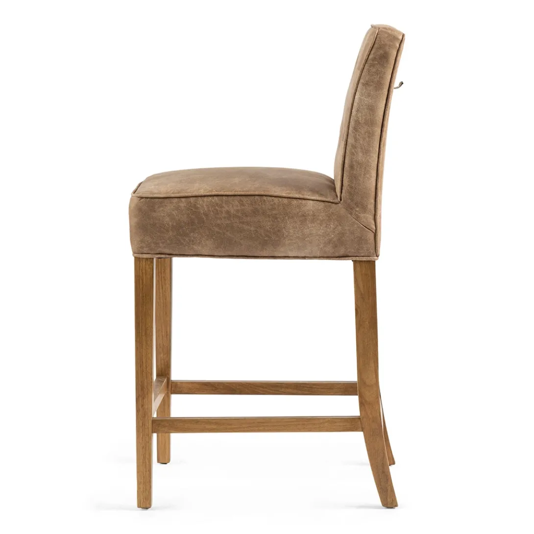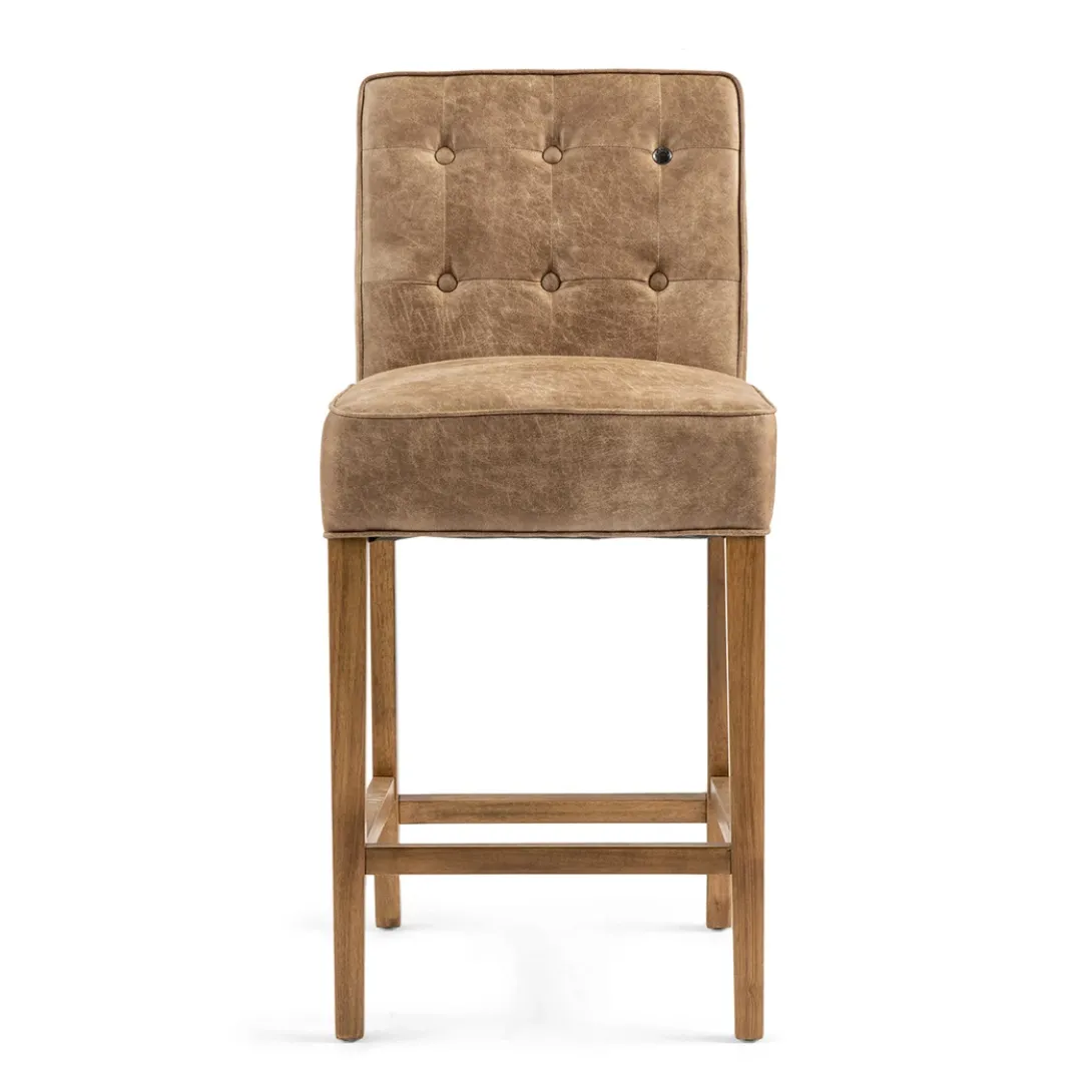Een comfortabele barkruk voor aan een kookeiland of hoge tafel, dat is de Cape Breton Counter Stool, een klassieke barkruk uit de collectie van Rivièra Maison. De bekleding is van stoer pellini leer. Opvallende details van deze stoel zijn de zilveren knoop in de capitonnering en de jashaak op de carpetleuning. Deze stoel komt in verschillende uitvoeringen, materialen en kleuren.