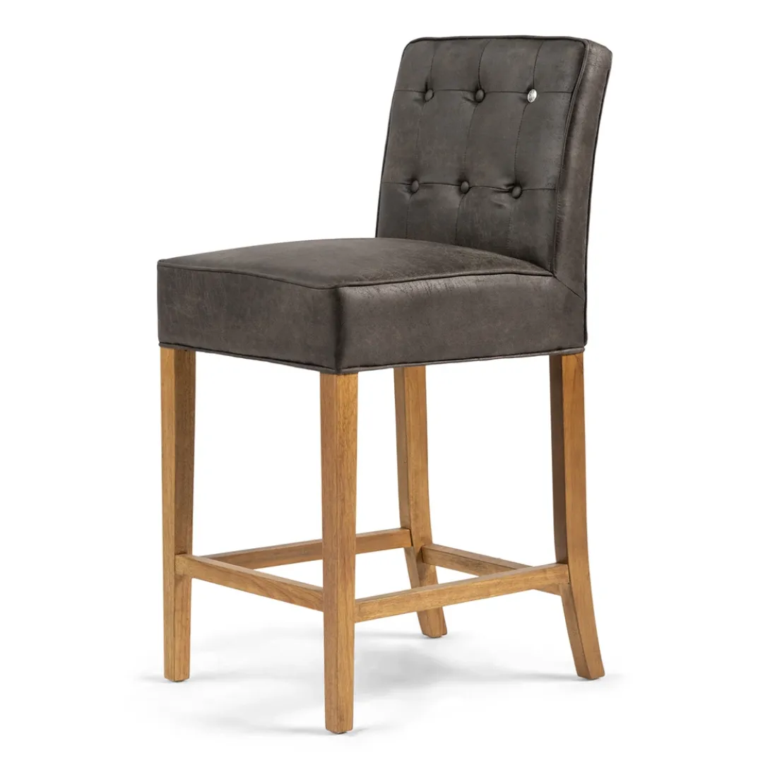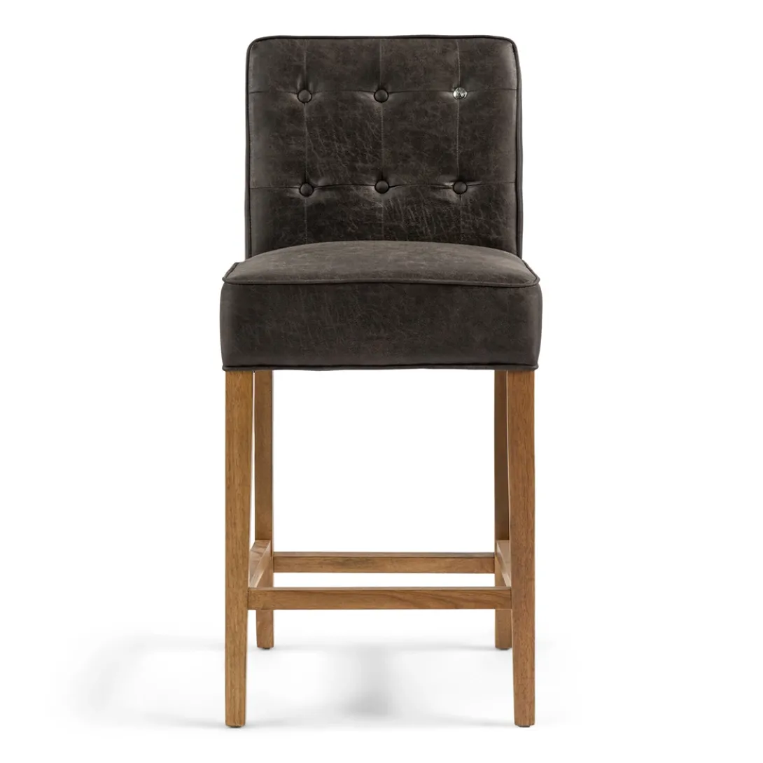 Een comfortabele barkruk voor aan een kookeiland of hoge tafel, dat is de Cape Breton Counter Stool, een klassieke barkruk uit de collectie van Rivièra Maison. De bekleding is van stoer pellini leer. Opvallende details van deze stoel zijn de zilveren knoop in de capitonnering en de jashaak op de carpetleuning. Deze stoel komt in verschillende uitvoeringen, materialen en kleuren.