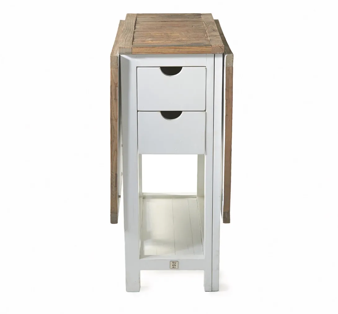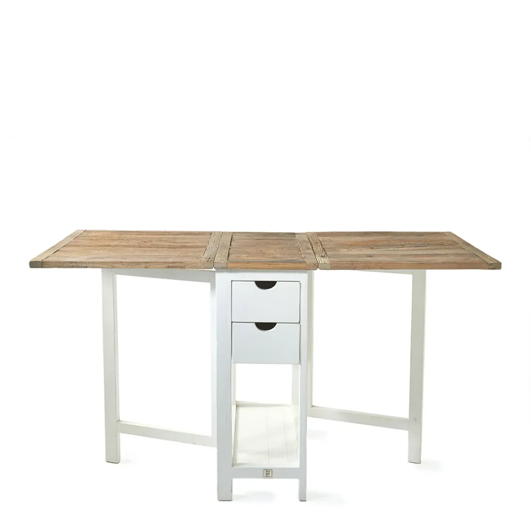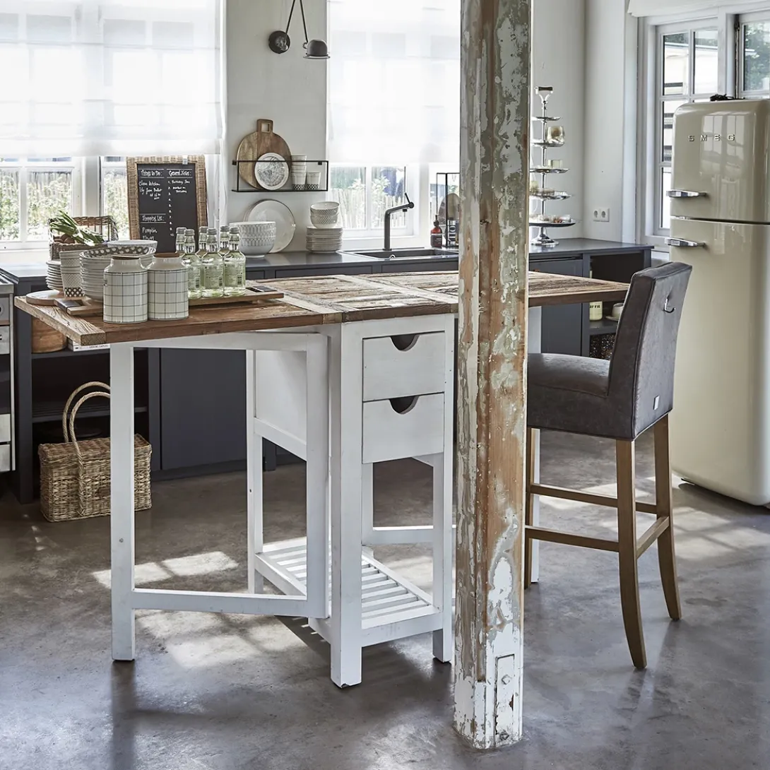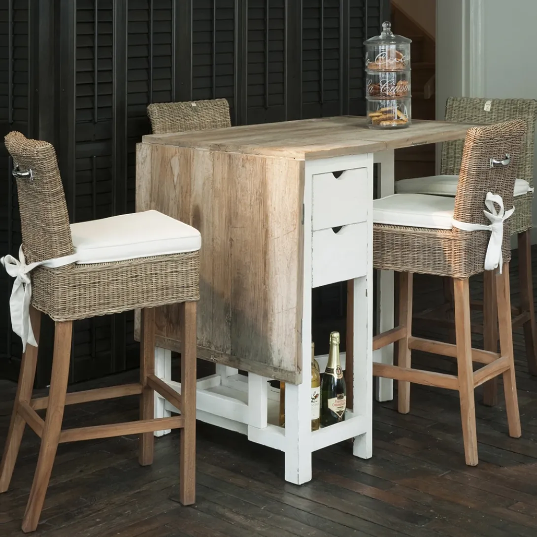 Deze stoere bartafel is makkelijk te vergroten door de uitklapbladen.