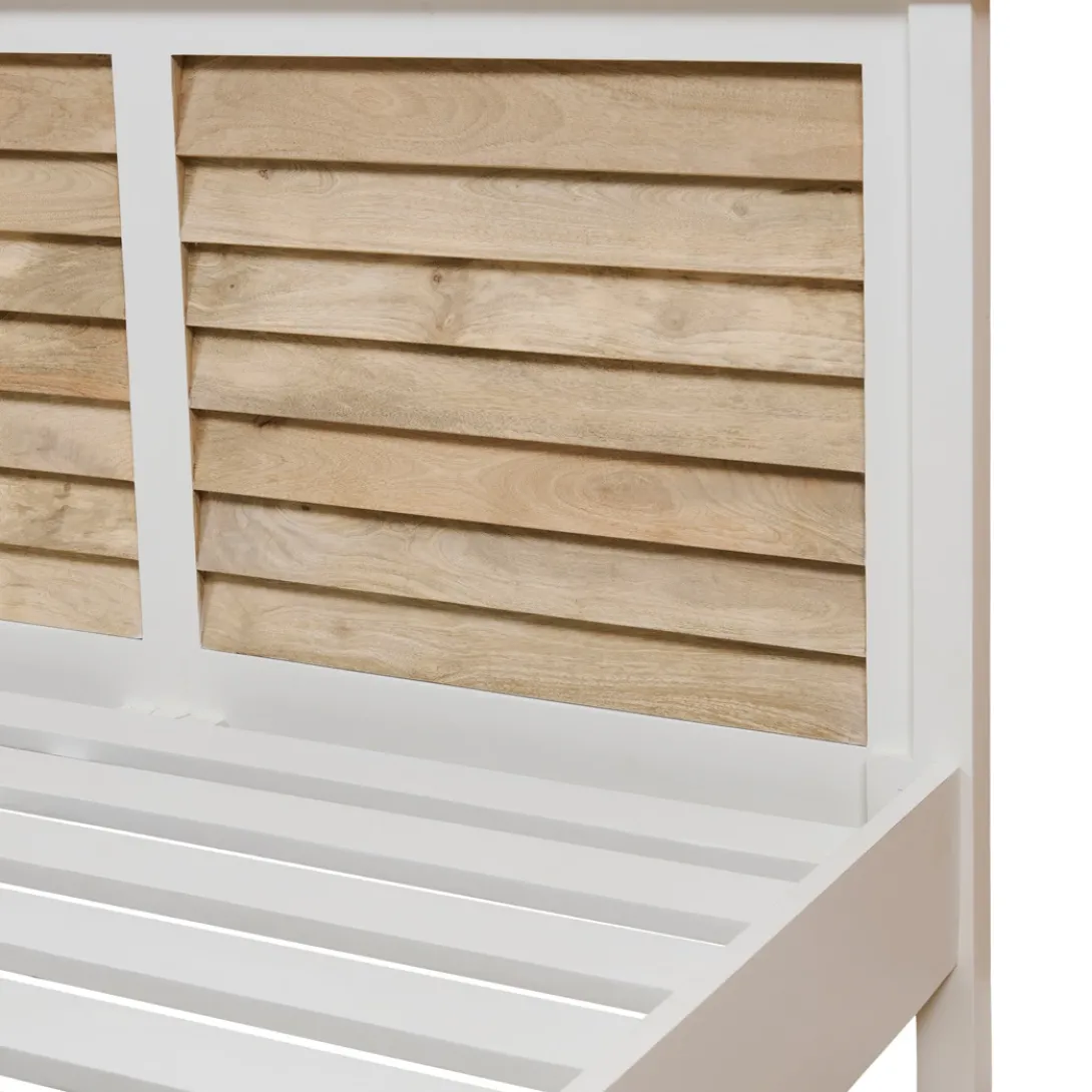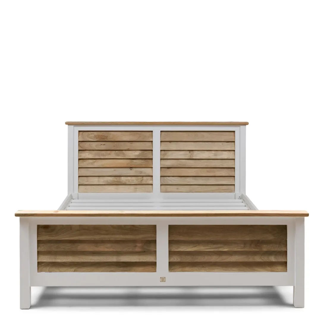 Breng luxe en rust in je slaapkamer met het Pacifica tweepersoonsbed. Het verfijnde design, met een witte basis en subtiele lichtkleurige houten shutters, creëert een serene, landelijke sfeer. De royale afmetingen bieden de perfecte ruimte voor een verkwikkende nachtrust, terwijl de stevige constructie garandeert dat je jarenlang kunt genieten van ultiem comfort. Dit bed is niet alleen een rustplek, maar een stijlvol statement dat je kamer een verfijnde, gezellige uitstraling geeft.