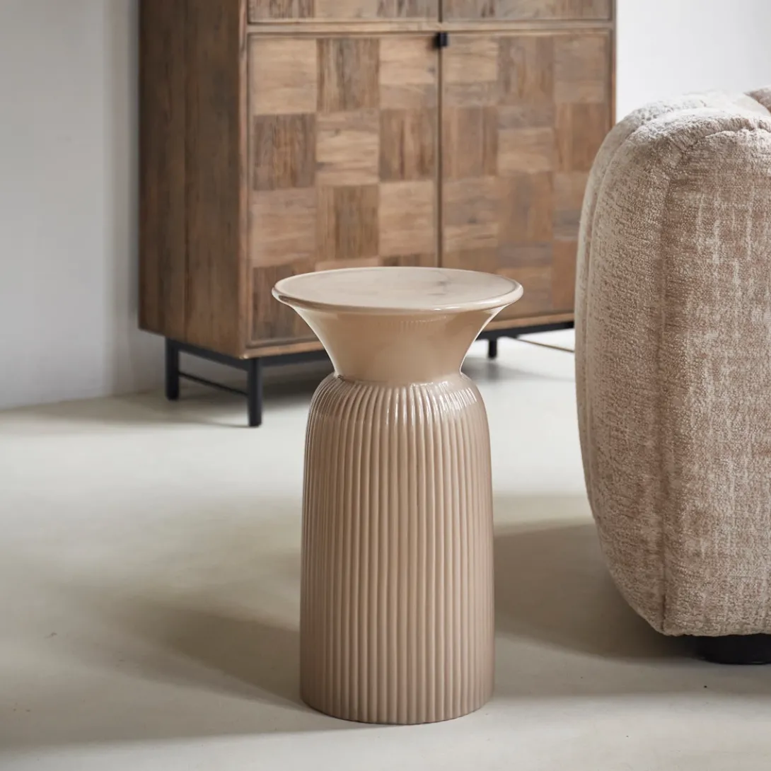 Voeg een vleugje verfijning toe aan je woonkamer met de Cascais bijzettafel in zandkleur. Deze luxe bijzettafel biedt niet alleen ruimte voor decoratie, maar versterkt ook de stijl van je interieur. Het moderne ontwerp en de slanke afmetingen maken het de perfecte keuze voor elke ruimte.