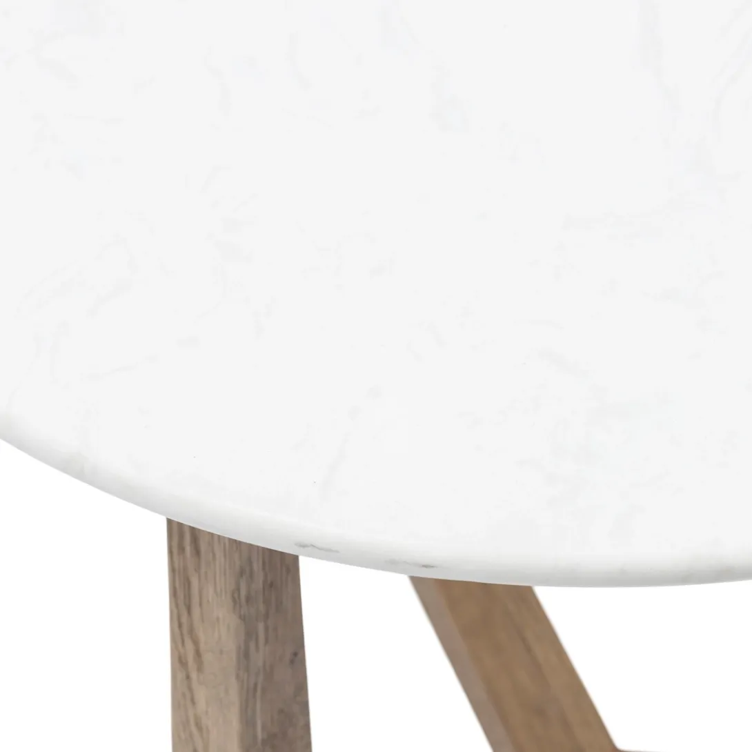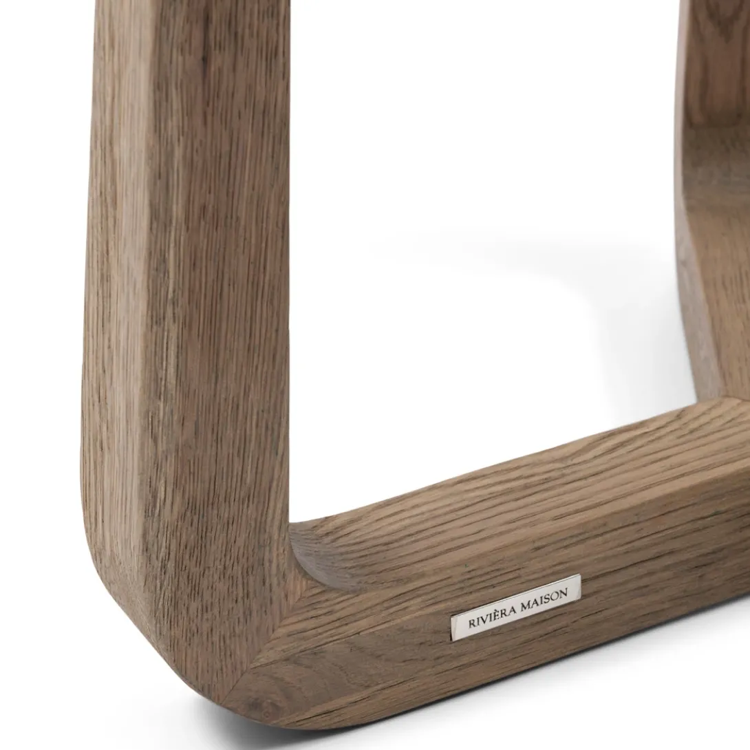 - Deze bijzettafel is werkelijk uniek. Het ronde marmeren blad voegt een luxe uitstraling toe, terwijl de drie eikenhouten poten in een modern ontwerp samenkomen. Het subtiele Rivièra Maison-logo op de poot accentueert de verfijning van het geheel. Elke tafel is uniek door de natuursteen, waardoor je altijd een one-of-a-kind stuk in je interieur hebt. Perfect voor een stijlvolle en eigentijdse touch.
