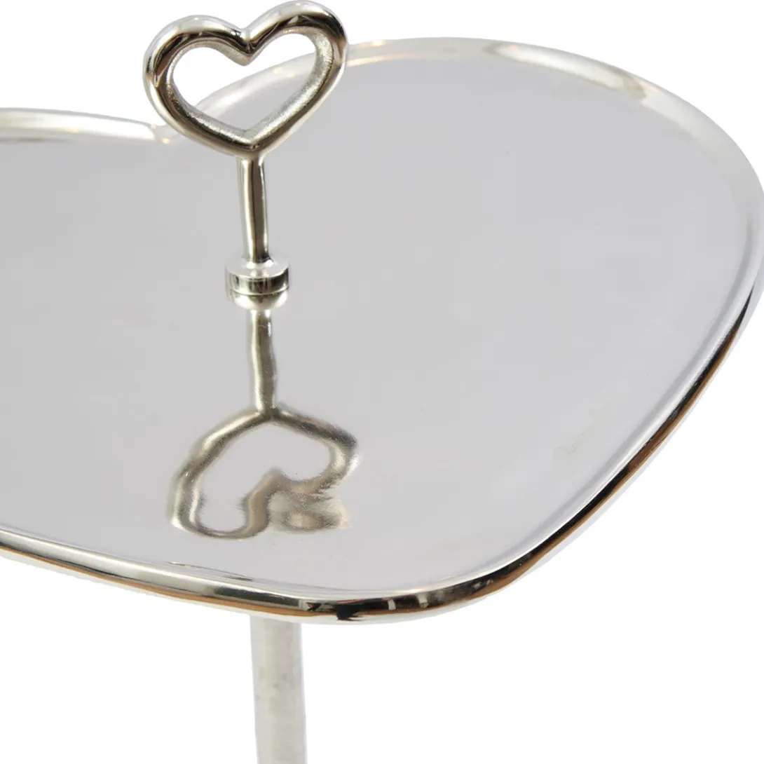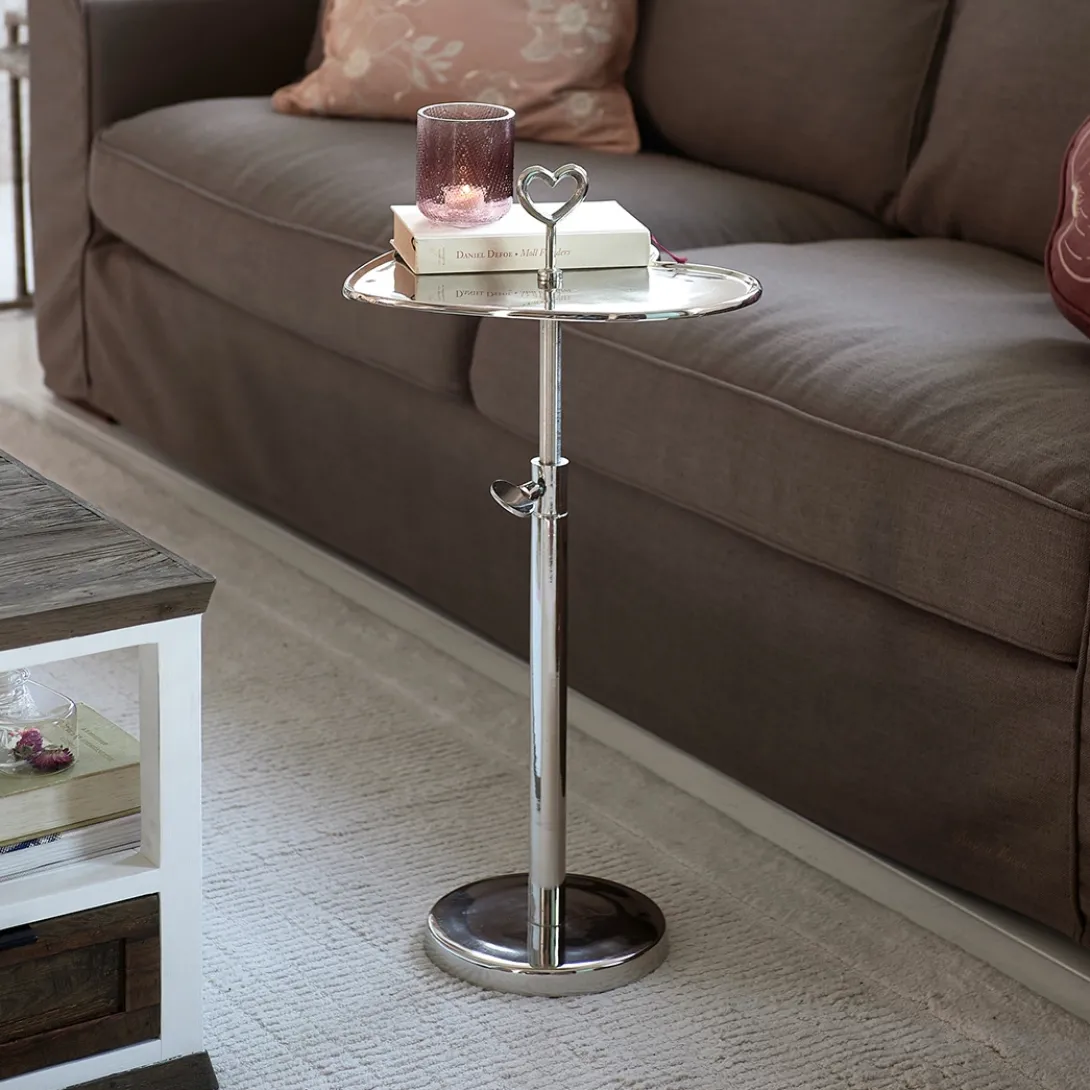 De Lovely Heart Adjustable End Table is een bijzettafel die in hoogte verstelbaar is. Door te draaien aan het hartvormige tafelblad maak je het tafeltje hoger of lager. De aluminium bijzettafel in zilver heeft ook een handvat in de vorm van een hart waarmee je de bijzettafel eenvoudig optilt en verplaatst.