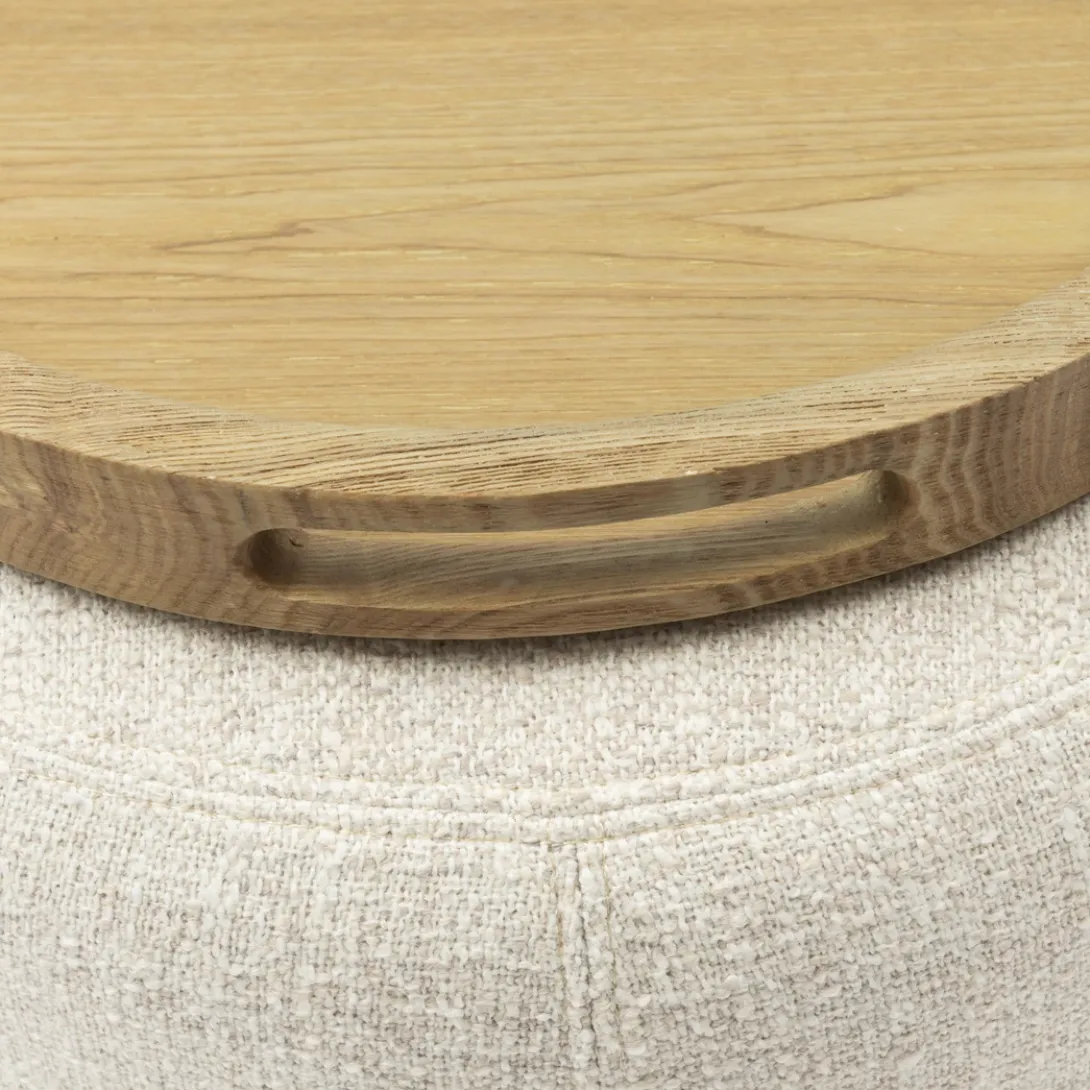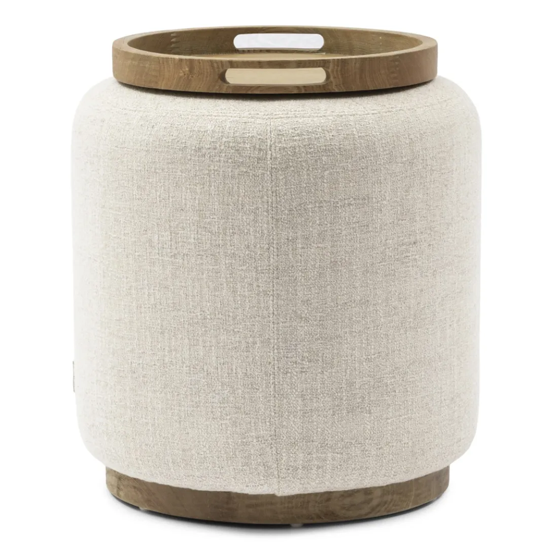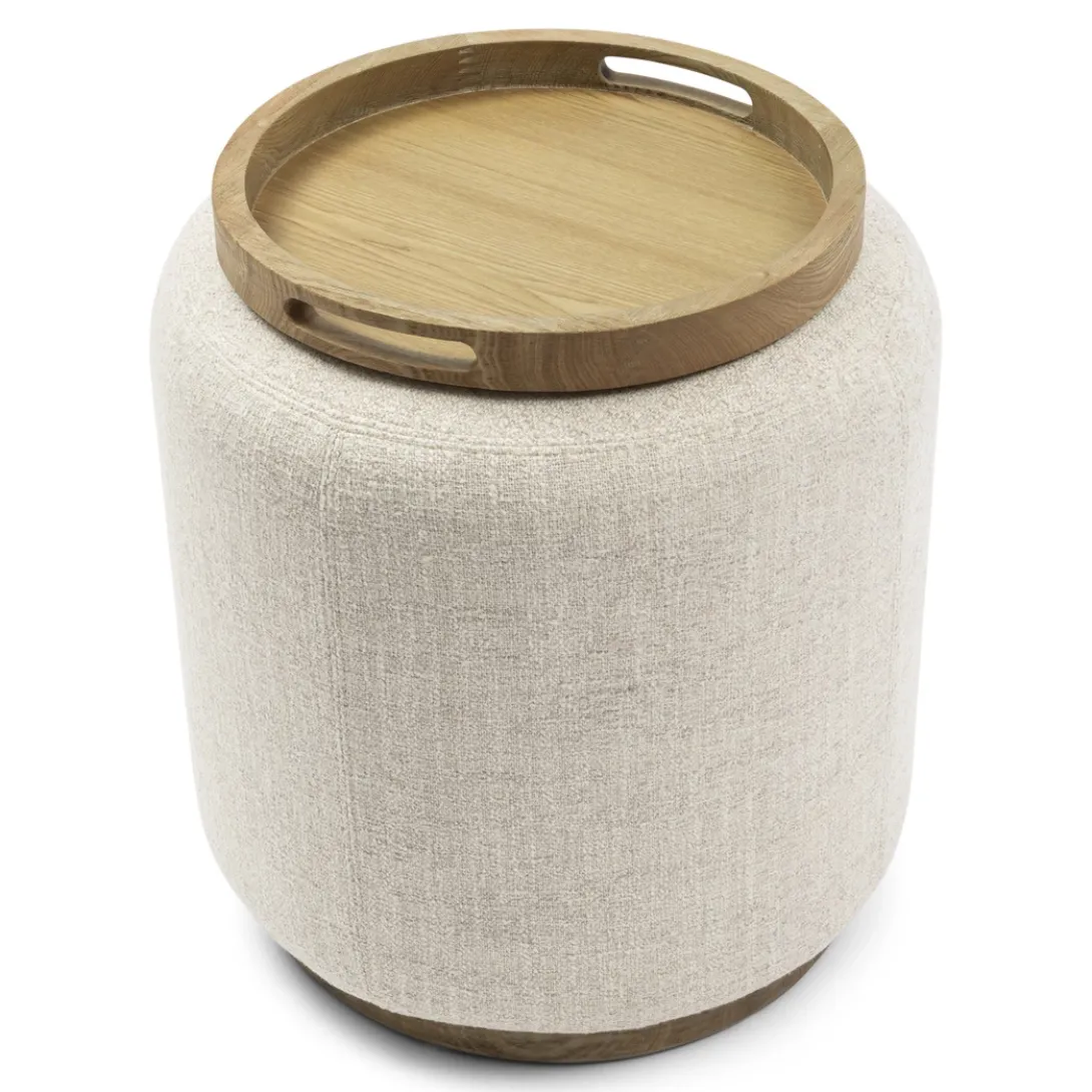 Deze poef met bijpassend dienblad is de perfecte toevoeging voor jouw woonkamer. De poef heeft een polyester bekleding en het dienblad is gemaakt van iepenhout. Handig voor een hapje en een drankje maar ook een mooie plek om decoratie op te presenteren. De poef en het dienblad zijn samen maar ook afzonderlijk te gebruiken.