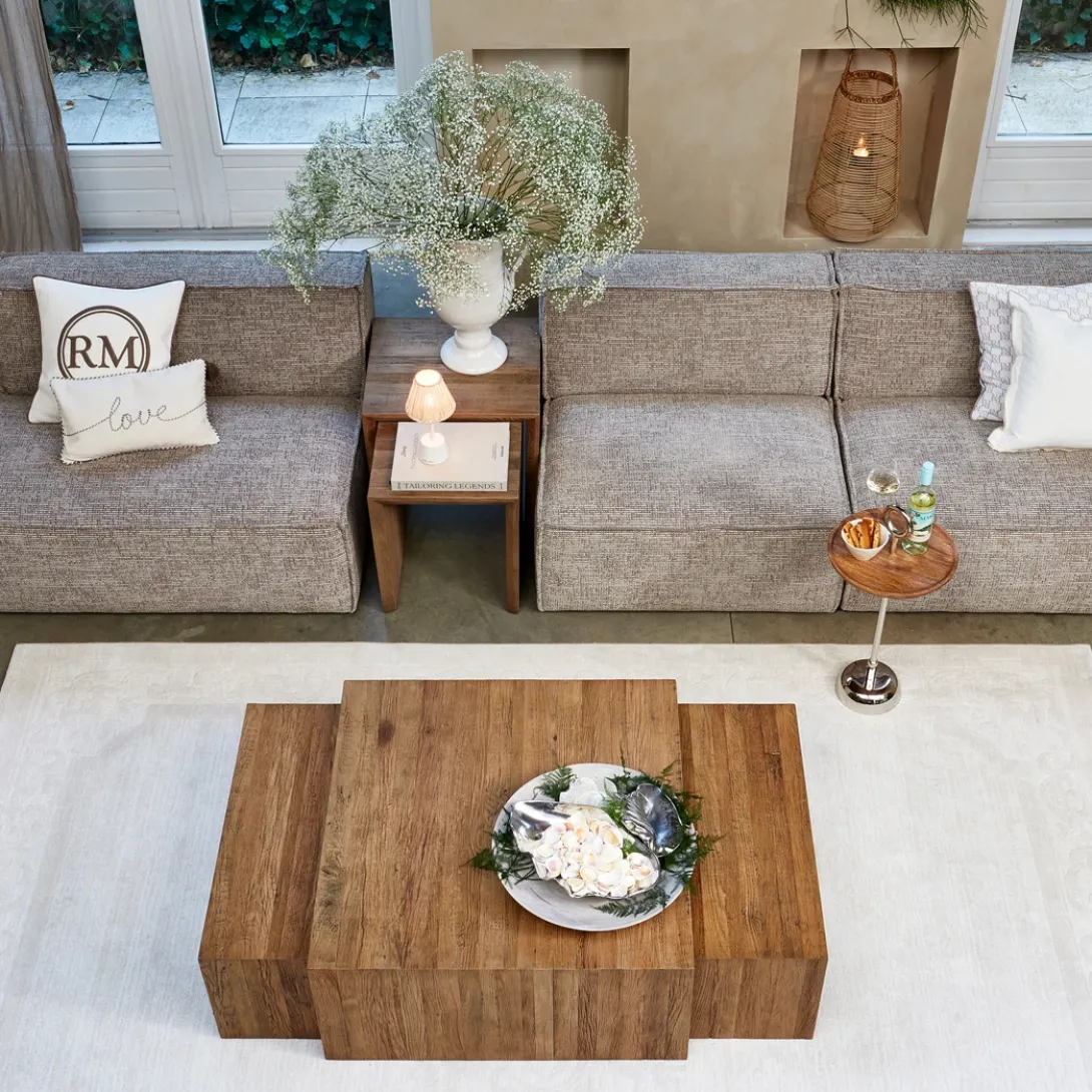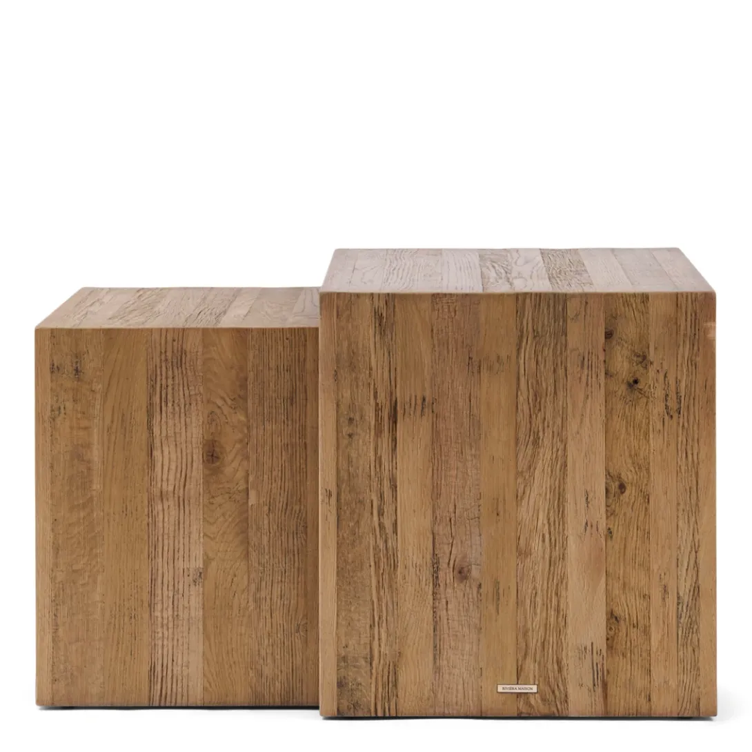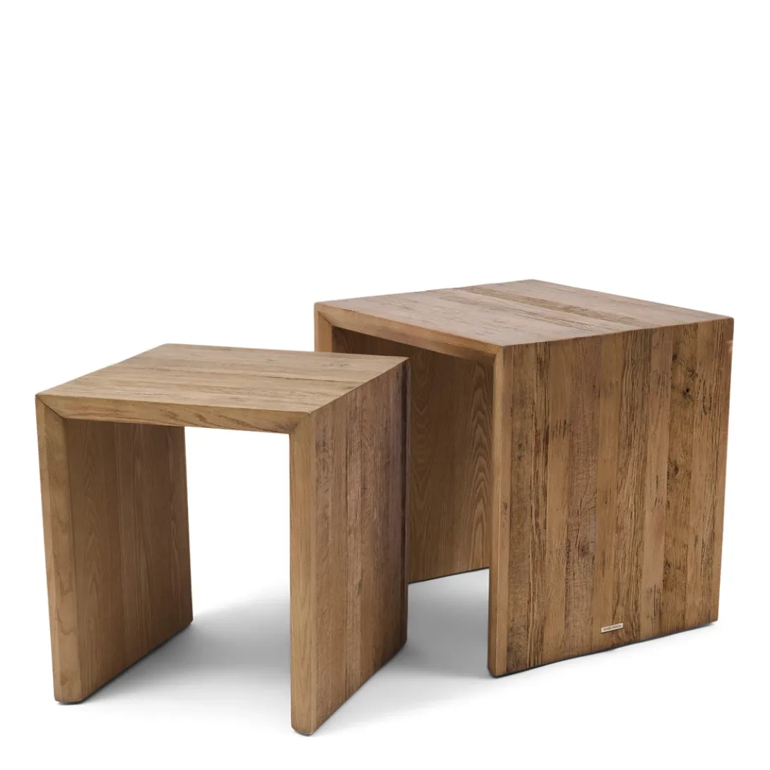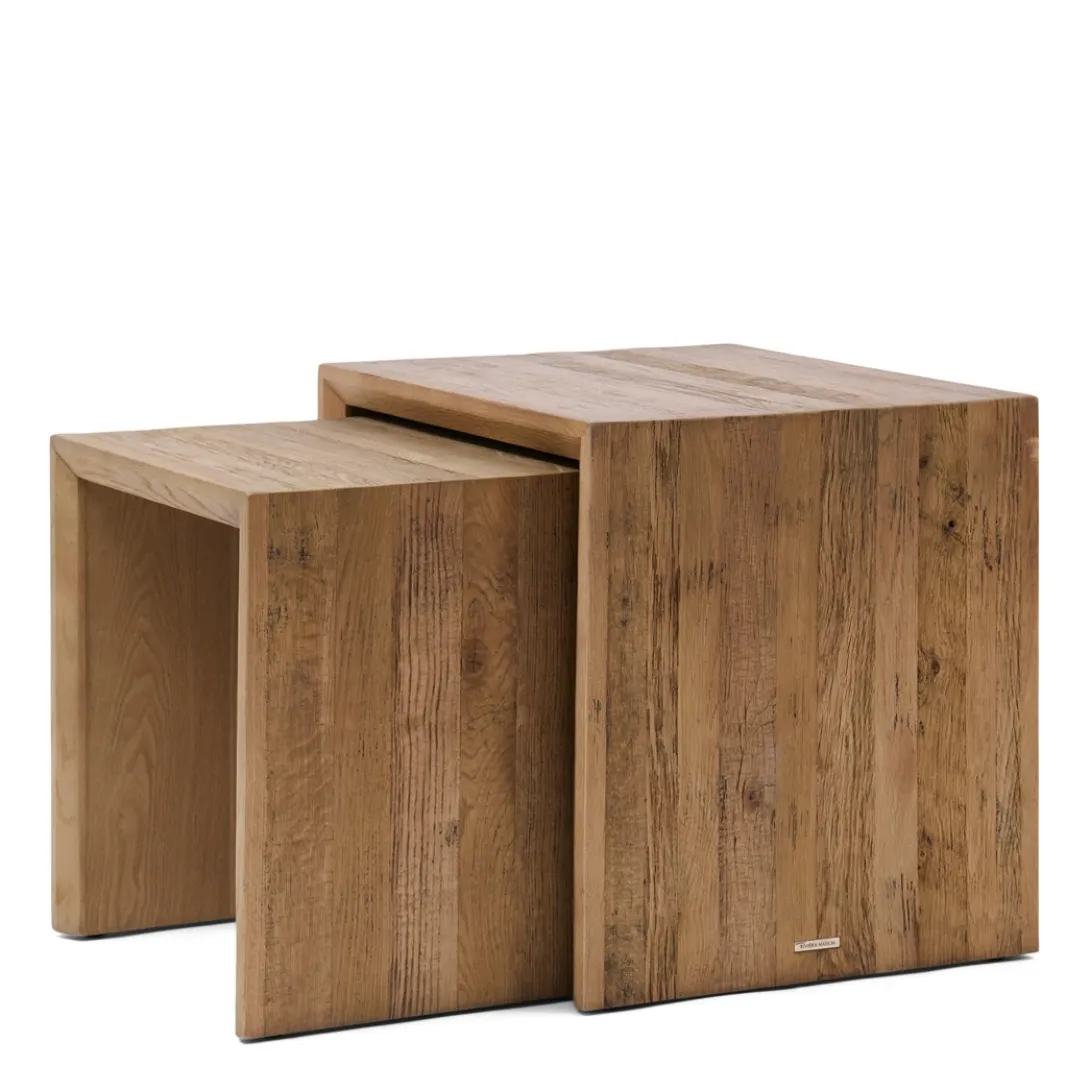 Breng stijl en flexibiliteit in je interieur met dit set van twee strakke bijzettafels in eikenhout. Of je ze nu apart gebruikt of in elkaar schuift, ze passen perfect in elke ruimte en bieden talloze mogelijkheden voor indeling. De grotere variant (55 cm hoogte, 50 cm breedte, 55 cm lengte) en kleinere variant (50 cm hoogte, 45 cm breedte, 45 cm lengte) creëren samen een harmonieus en modern statement. Deze tafels voegen functionaliteit en een luxe uitstraling toe, terwijl ze je woonkamer een verfijnde look geven.