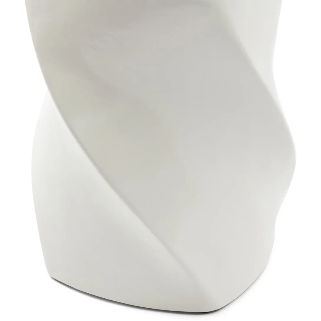 De witte variant van de Vigo Bijzettafel is een stijlvolle aanvulling voor ieder interieur. Met een royale diameter van 40 cm biedt deze bijzettafel voldoende ruimte voor je geliefde voorwerpen. Gefabriceerd uit hoogwaardig keramiek in een heldere witte tint. Het unieke wokkeldesign geeft de tafel een eigentijdse uitstraling.
