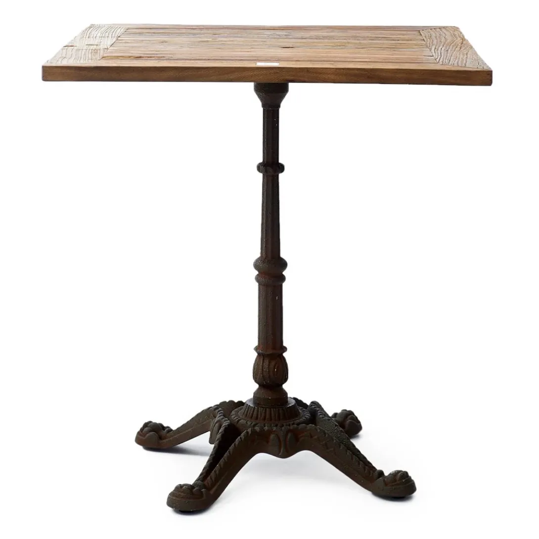 Waan je voor even in het charmante Parijs met de Rue du Bac Bistro Table: een elegant bistro tafeltje, waarvan het blad is gemaakt van een combinatie van gerecycled iepenhout en sparrenhout en een sierlijke, ijzeren voet. Vive la vie!