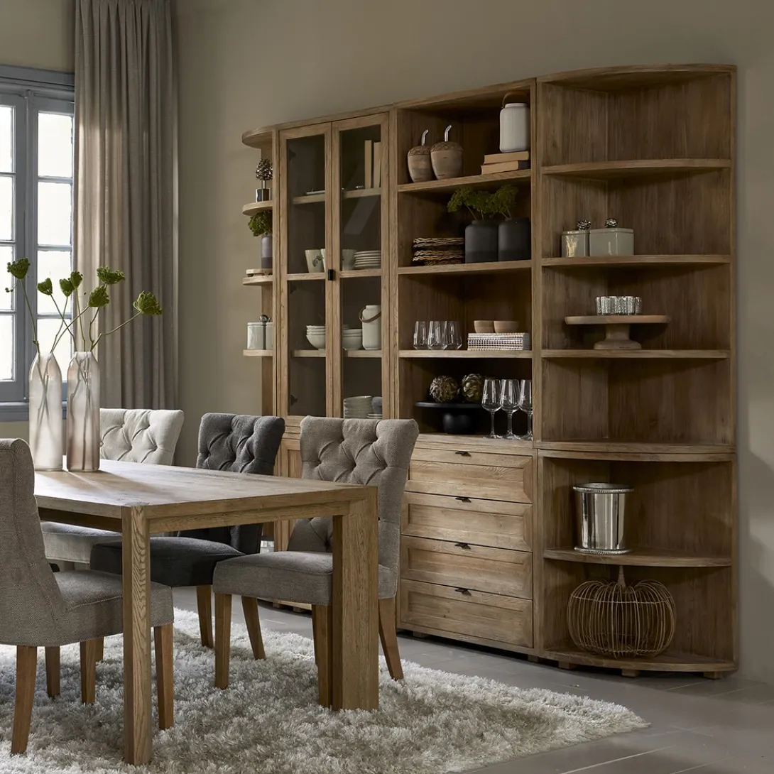 De boekenkast Del Rey van Rivièra Maison uit de Del Rey modulaire kasten serie die je naar wens kunt samenstellen. Deze boekenkast die altijd als bovendeel kan dienen bovenop op de dresser of bovenop de ladekast, heeft een afmetingen van 80x42x145 cm en geeft veel opbergruimte en is gemaakt van reclaimed eikenhout. Stel je voor hoe de natuurlijke houttonen je kamer verrijken en je persoonlijke spullen een plek geven om te schitteren!