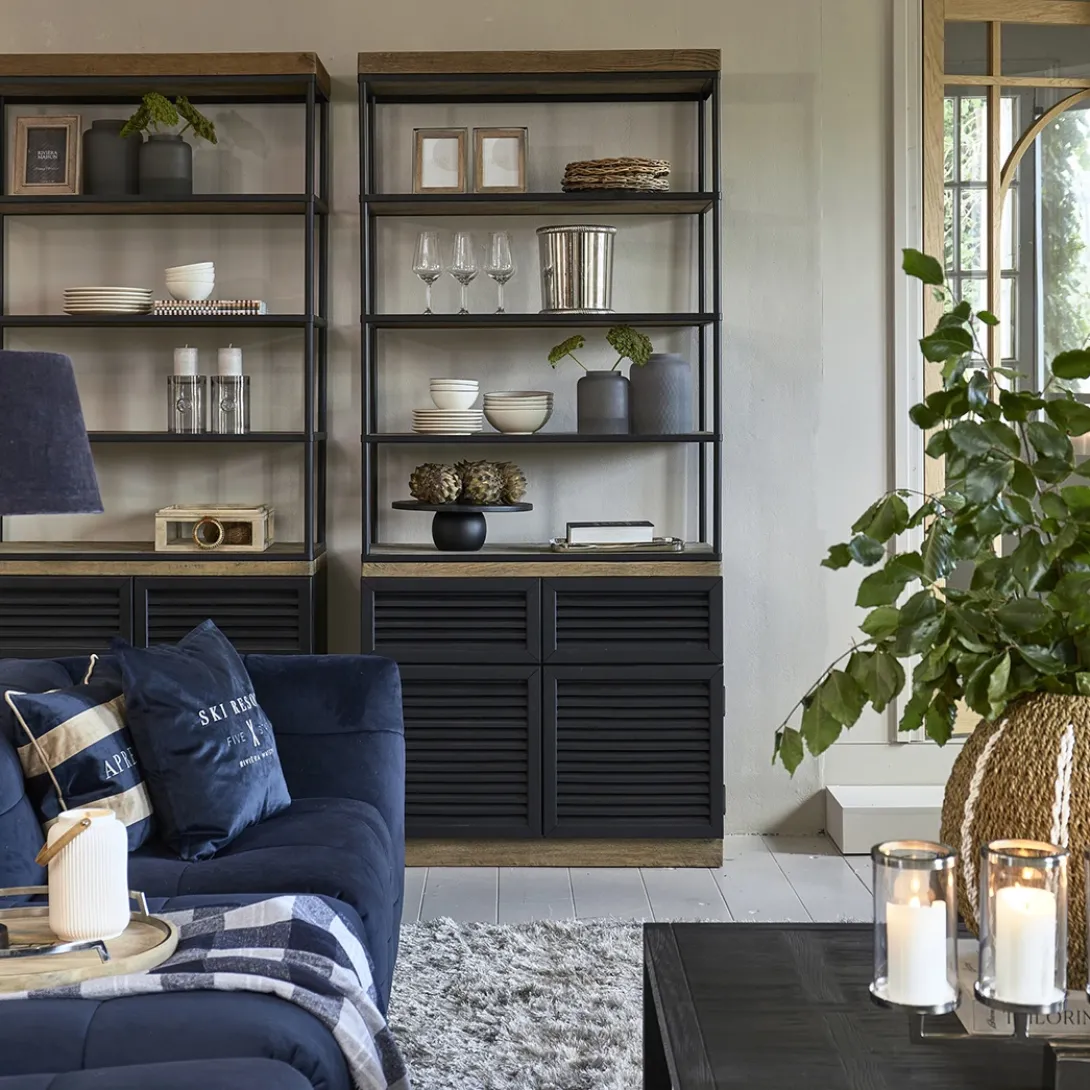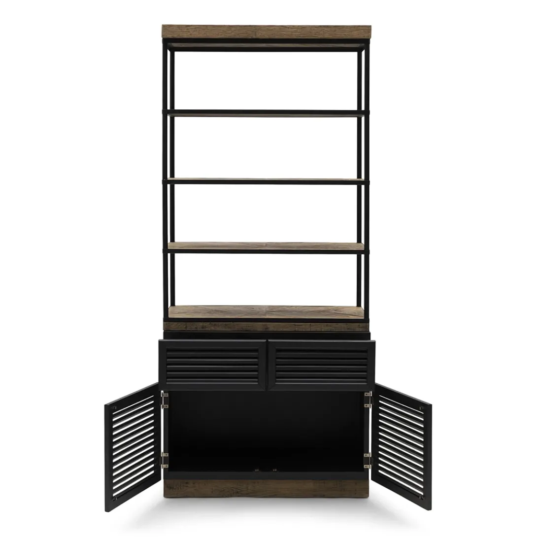 Boekenkast Stanford is net zo statig als zijn naam! Deze kast straalt karakter en stijl uit. Gemaakt van reclaimed eikenhout en populierenhout, met een elegant ijzeren accent. De shutterdeuren voegen een speels element toe aan deze mooie, hoge boekenkast van 100x47x226 cm. De top, het blad en de basis zijn uitgevoerd in verweerd eiken, waardoor deze boekenkast een warme en authentieke uitstraling heeft. Een tijdloos en prachtig meubelstuk.