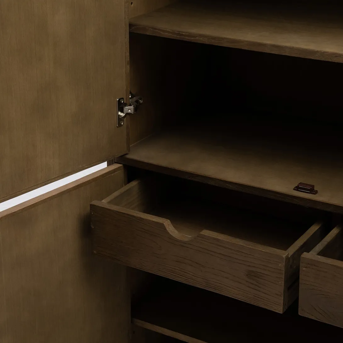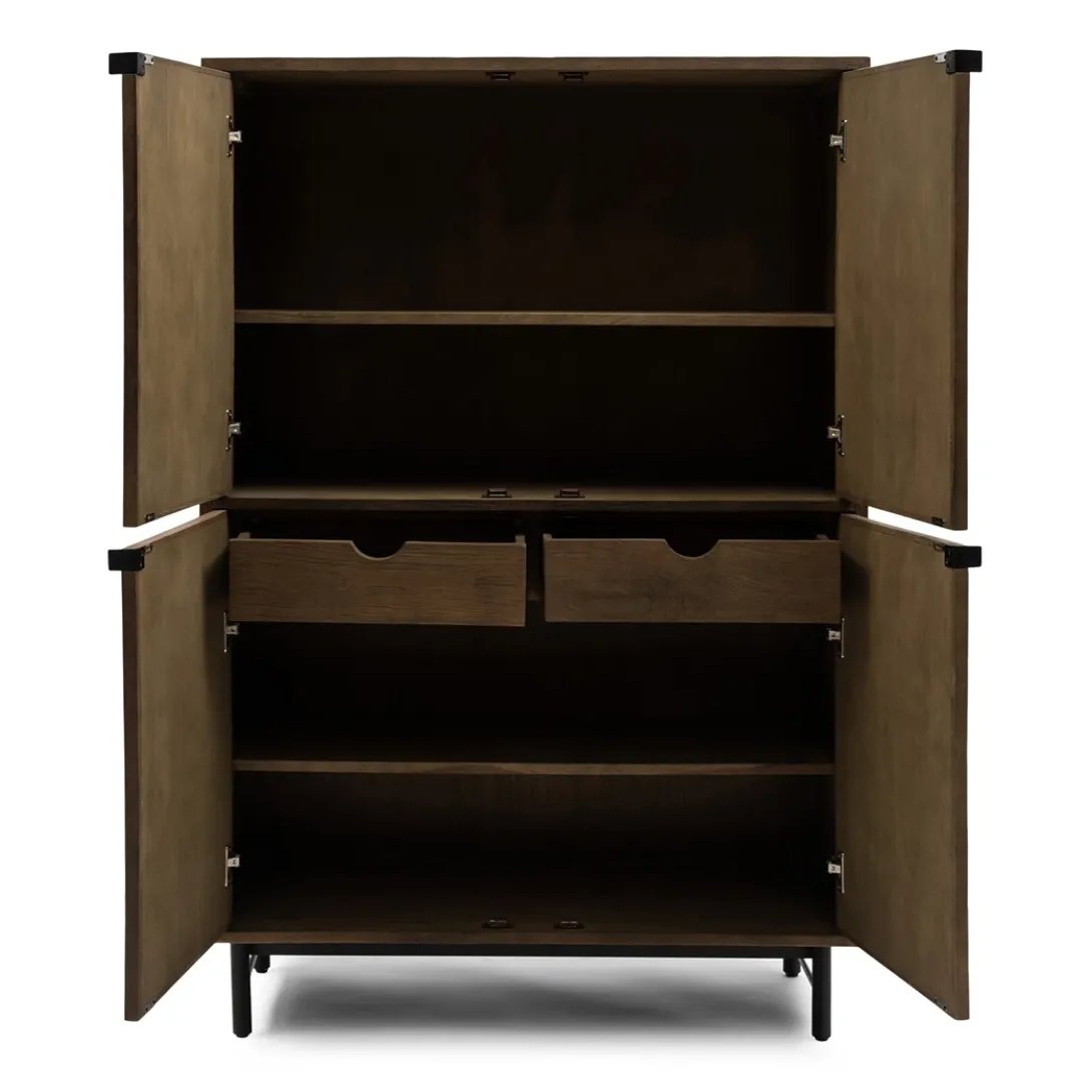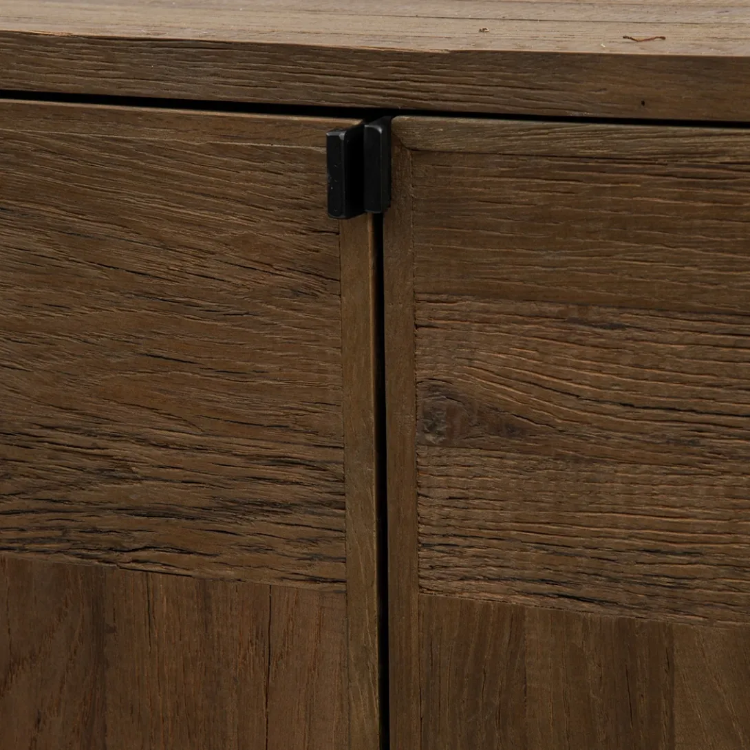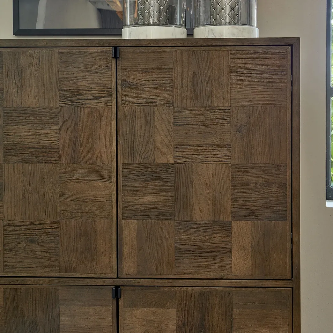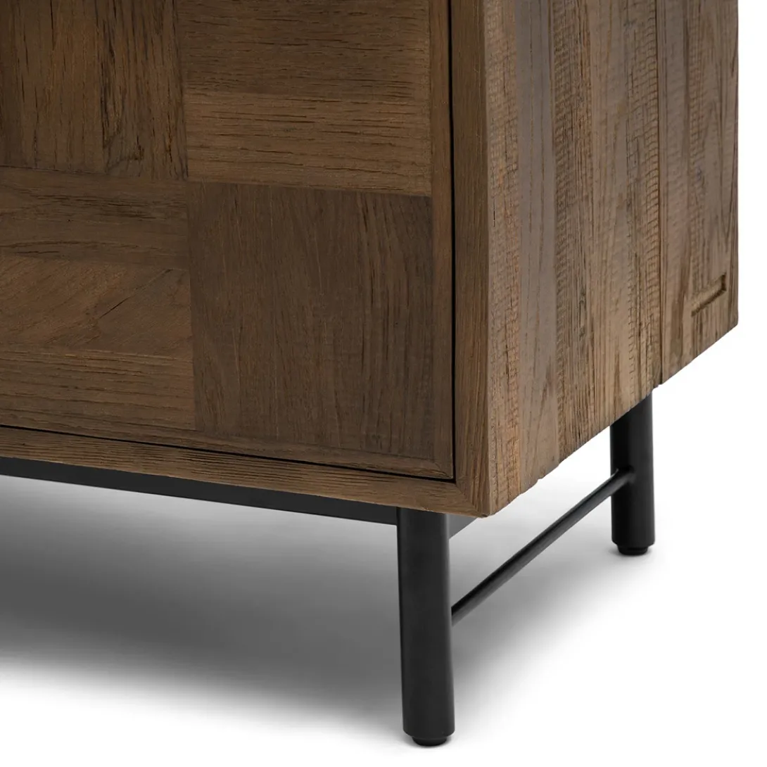 De Buffetkast Mac Arthur is een ware eyecatcher in je interieur. Gemaakt van duurzaam reclaimed eikenhout en stoer ijzer voor een moderne look. De kast heeft brede deuren en een uniek vierkant parketinleg patroon. Achter de deuren vind je handige laden voor extra opbergruimte. Absoluut onmisbaar voor in je woning. Door zijn afmetingen van 105x45x151 cm, past Mac Arthur overal!