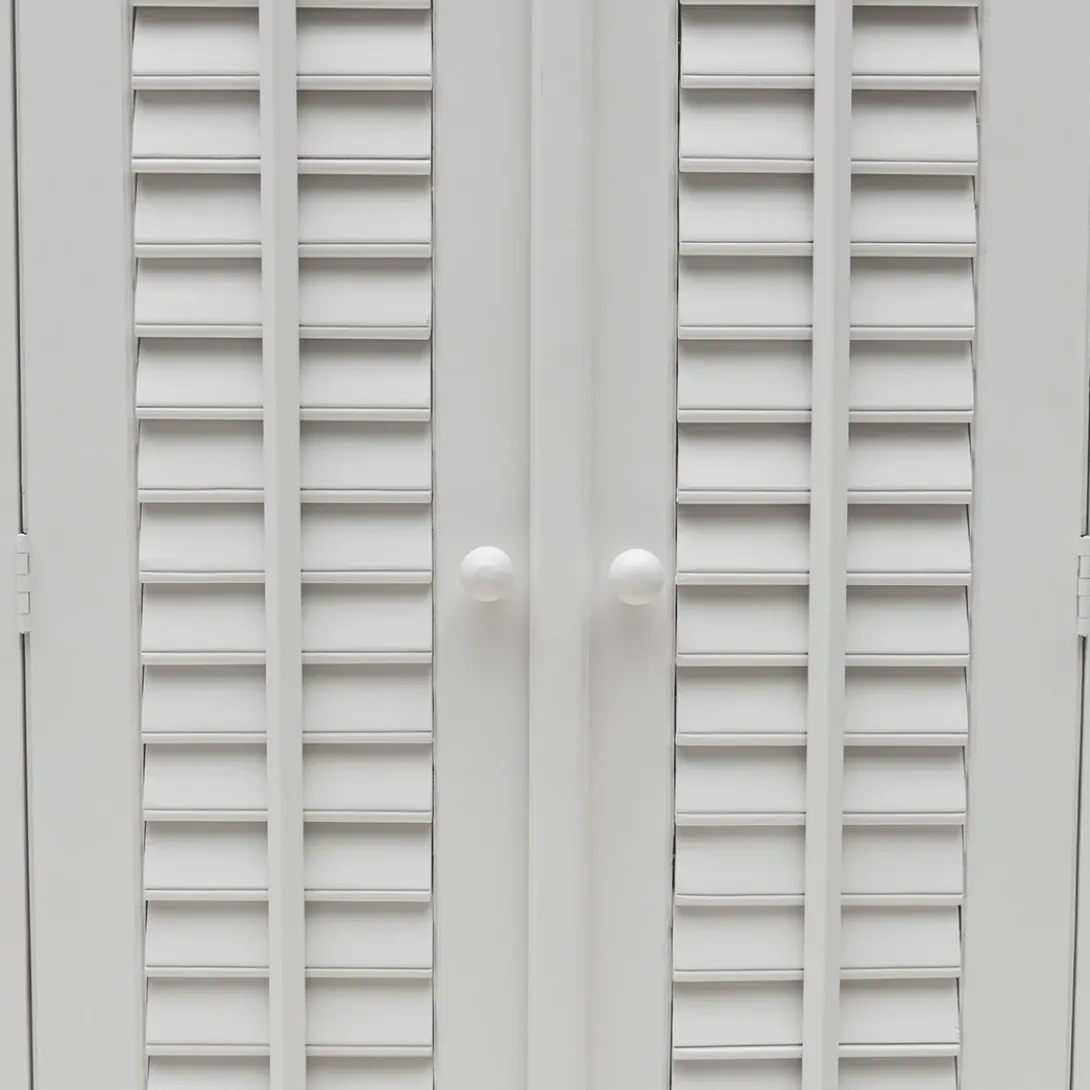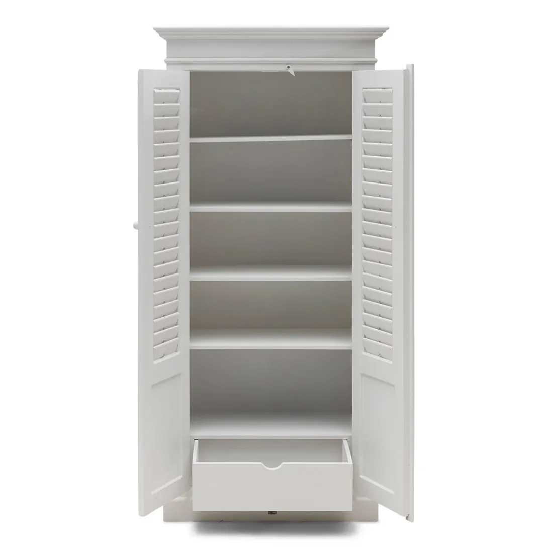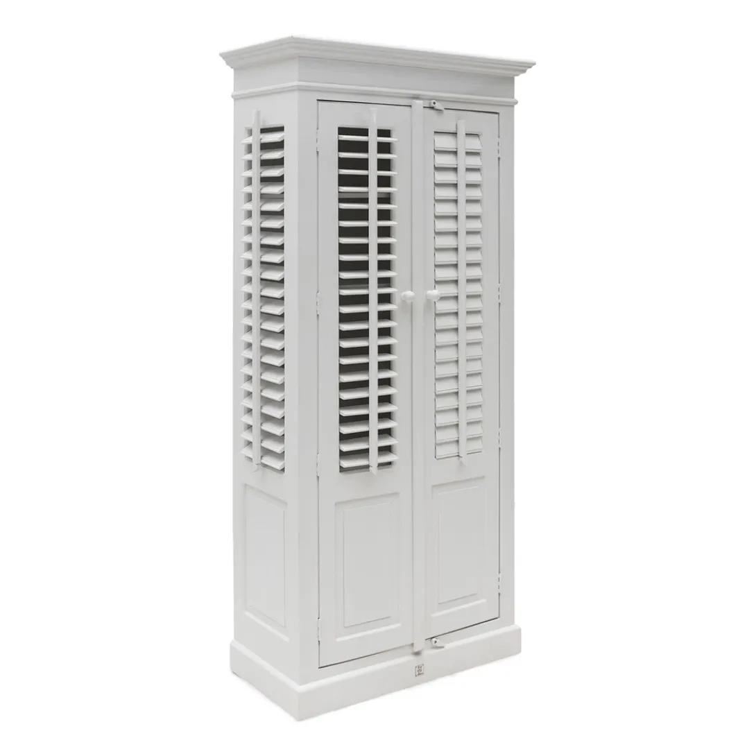New Orleans is de grootste stad van de Amerikaanse staat Louisiana. De stad ligt aan de oevers van de rivier de Mississippi. Deze fris witte louvrekast van acaciahout is echt een stoere kast met beweegbare shutters, zowel aan de voor- als de zijkant. In de kast vindt u vijf ruime planken en een grote lade.
