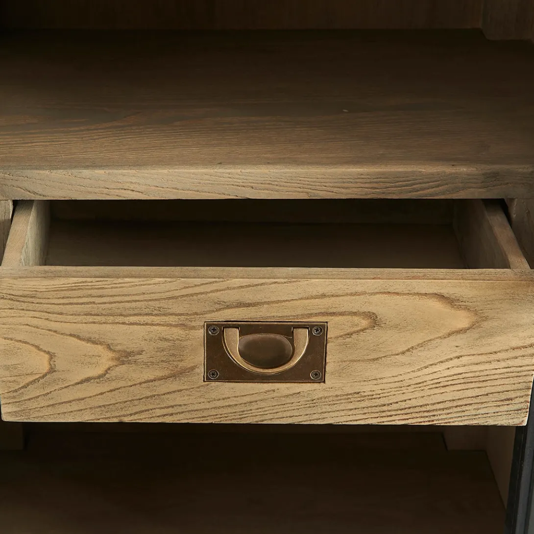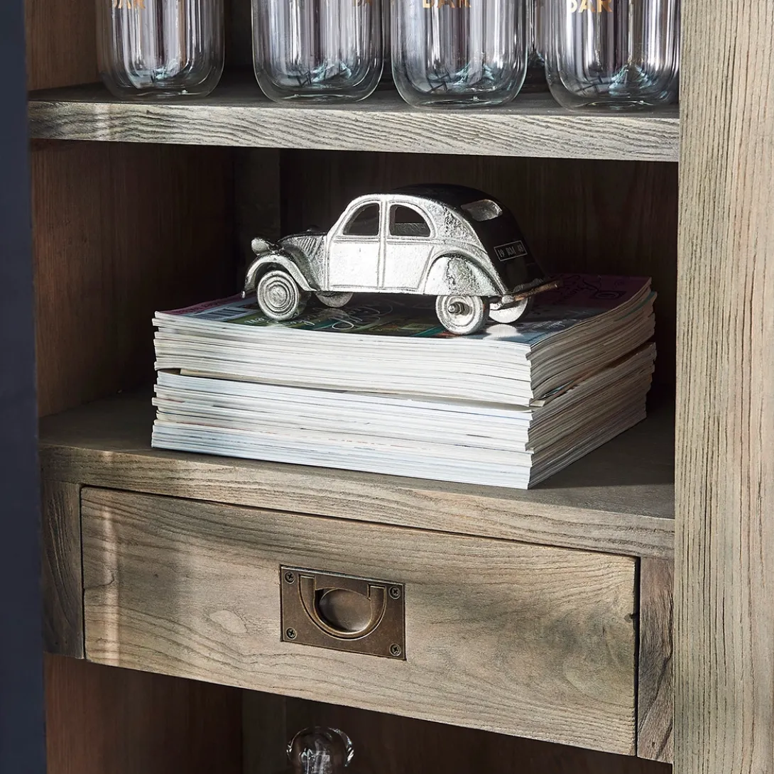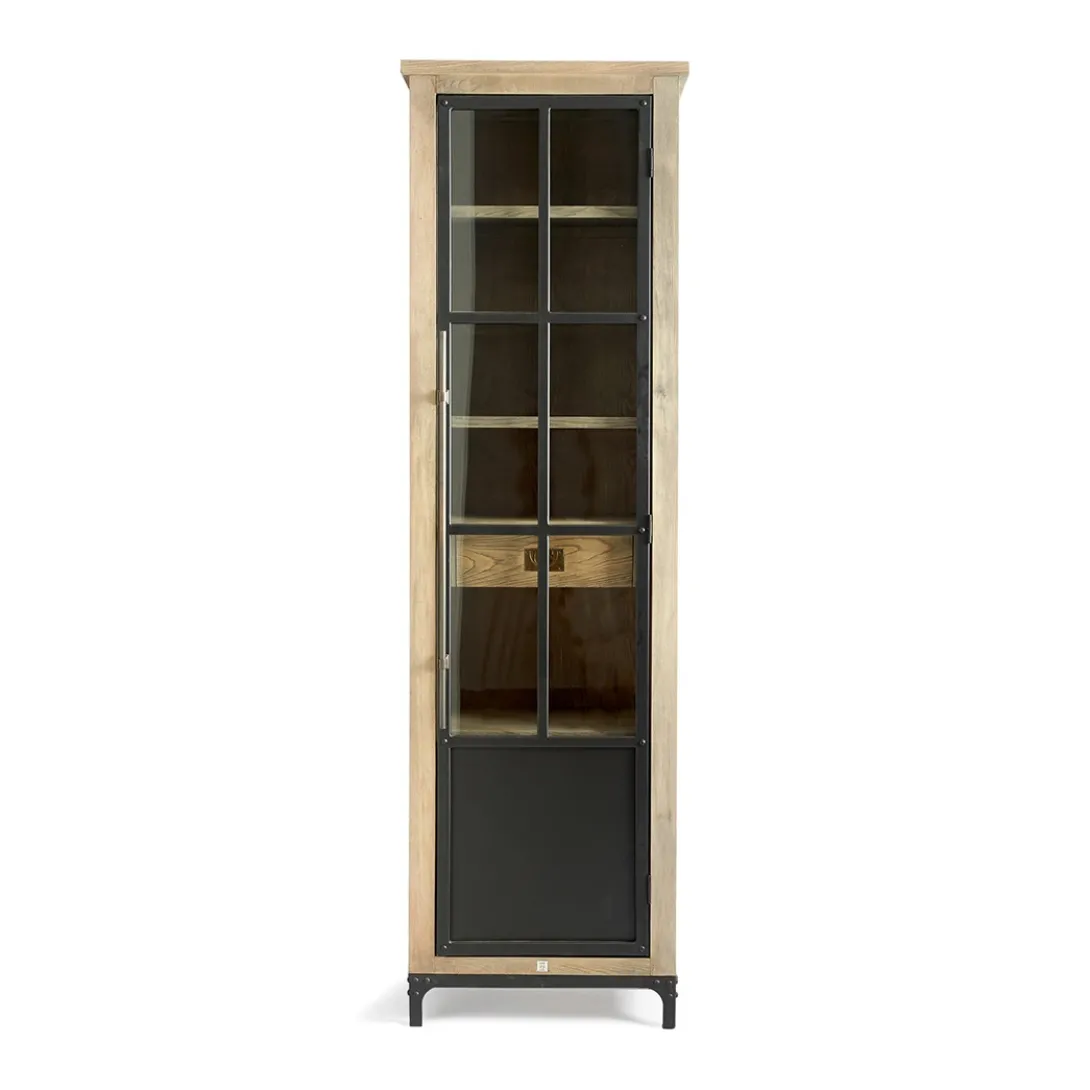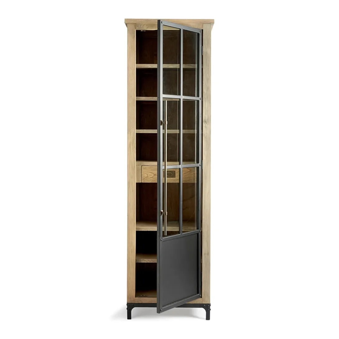 Met deze prachtige smalle buffetkast haalt u een echte blikvanger in huis. De combinatie van gerecycled essenhout en het robuuste staal werkt perfect samen en lijkt een match made in heaven. De kast kan zowel in een industrieel interieur als in een klassieker interieur en komt in beide gevallen waanzinnig goed tot zijn recht. Met openklapbare deur, planken en een lade.
