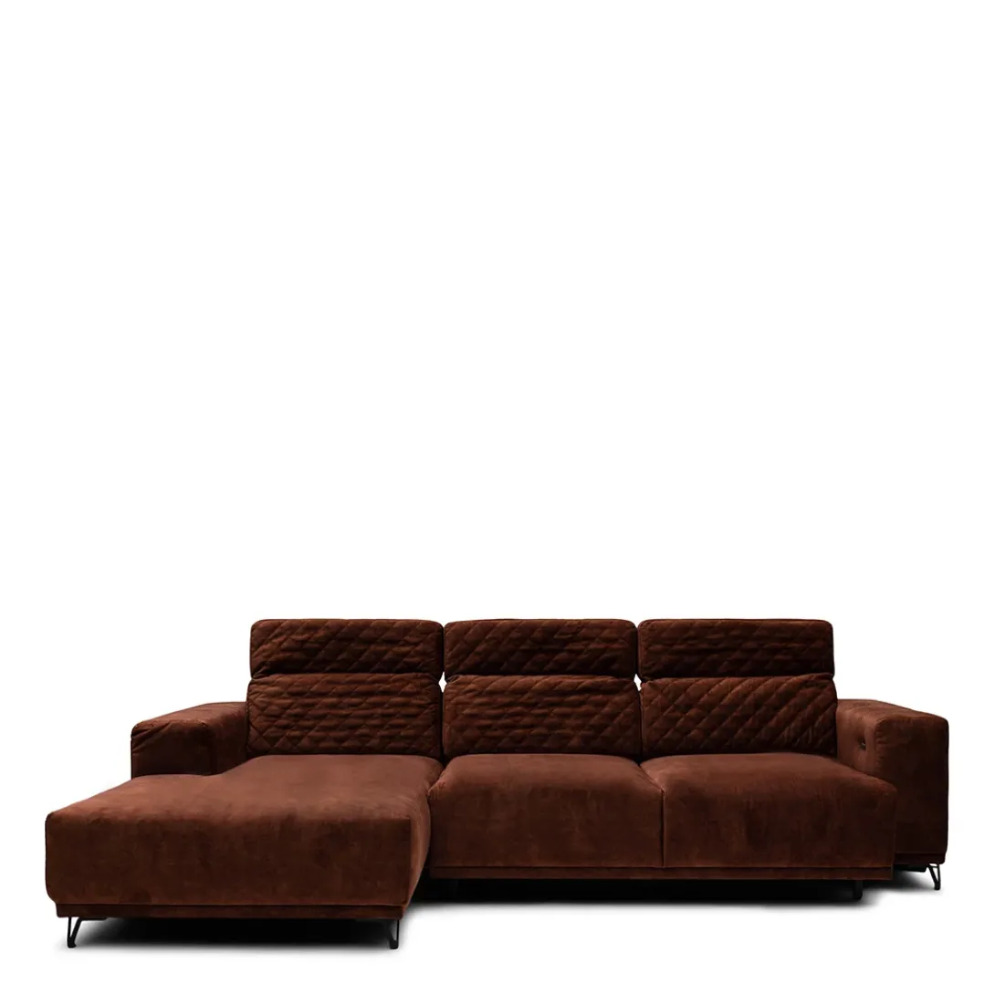 De Marciana Sofa is een elektrische comfortabele bank in combinatie met een chaise longue. Het zitgedeelte is elektrisch verstelbaar en de rug van bank kan handmatig worden aangepast. De chaise longue is in een linker als rechter uitvoering beschikbaar. De bank heeft een velvet I bekleding, in de kleur chestnut. Het framewerk is van beukenhout.