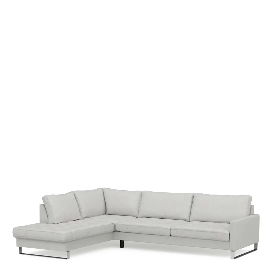 Deze luxe hoekbank met gecapitoneerde Chaise Longue en metalen onderstel heeft een strakke, frisse en moderne uitstraling. Een echte eyecatcher in uw interieur die ook nog eens ontzettend lekker zit. Verkrijgbaar in verschillende uitvoeringen en kleuren.