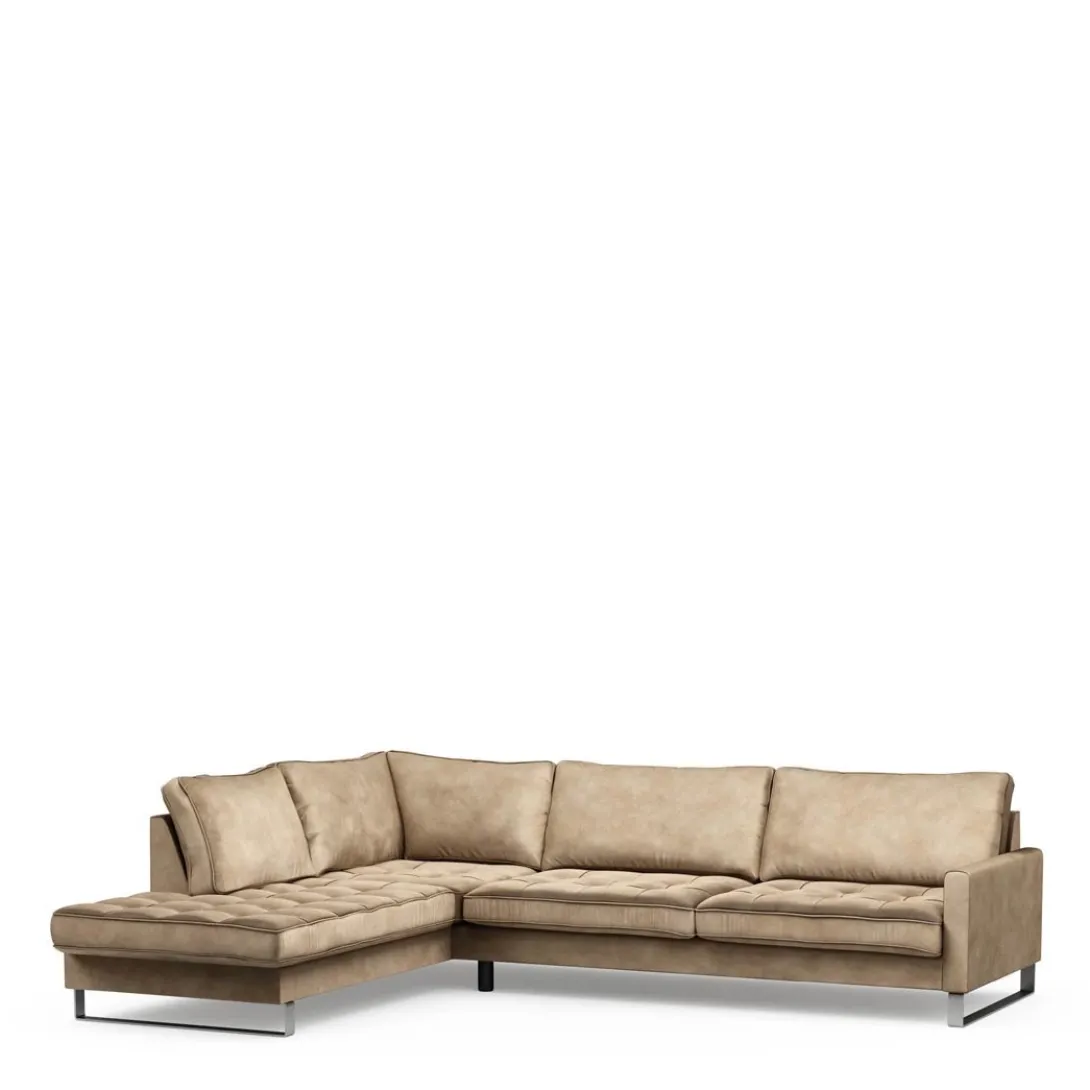 Deze luxe hoekbank met gecapitoneerde Chaise Longue en metalen onderstel heeft een strakke, frisse en moderne uitstraling. Een echte eyecatcher in uw interieur die ook nog eens ontzettend lekker zit. Verkrijgbaar in verschillende uitvoeringen en kleuren.