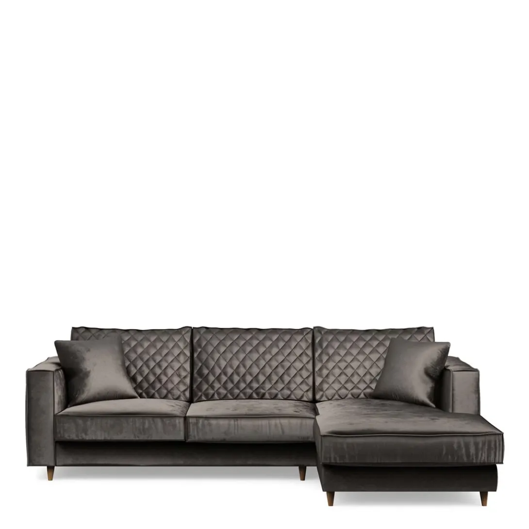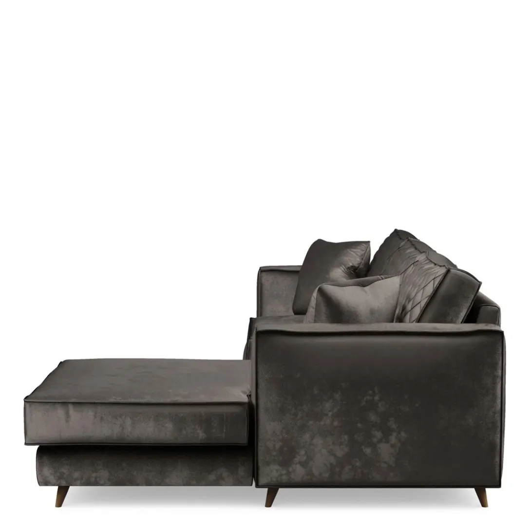 Wie op zoek is naar een zitbank en loungemeubel in één, die zoekt niet verder. In deze sofa met chaise longue-deel (rechts) uit de Kendall-serie komen beide elementen samen. De bank heeft een retro ‘look & feel’, door zijn schuine beukenhouten pootjes en zachte velvet bekleding. Deze sofa is verkrijgbaar in verschillende maten en uitvoeringen.