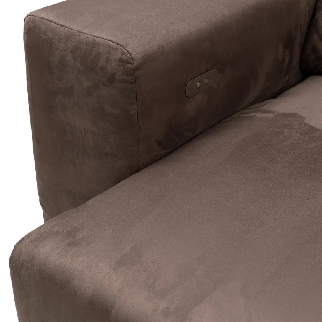 De Marciana Sofa is een elektrische comfortabele bank in combinatie met een chaise longue. Het zitgedeelte is elektrisch verstelbaar en de rug van bank kan handmatig worden aangepast. De chaise longue is in een linker als rechter uitvoering beschikbaar. De bank heeft een scottish suede bekleding, in de kleur brown sugar. Het framewerk is van beukenhout.