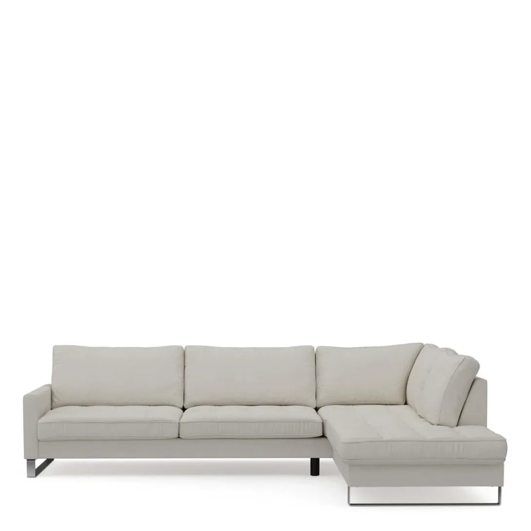 De chaise longue kan links, maar ook rechts. Net wat goed staat in de living. Deze is rechts gepland, en biedt de vermoeide mens een heerlijk plekje om bij te komen. Een powernap is zo geregeld. Deze bank met chaise is gemaakt van beukenhout, ijzer en polyester en is lekker robuust. Maar biedt heerlijk comfort. De bekleding is in verschillende materialen en kleuren te krijgen. De maat: 295 x 220 x 85 cm.