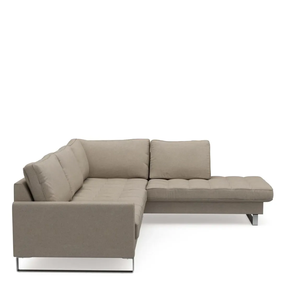 De chaise longue kan links, maar ook rechts. Net wat goed staat in de living. Deze is rechts gepland, en biedt de vermoeide mens een heerlijk plekje om bij te komen. Een powernap is zo geregeld. Deze bank met chaise is gemaakt van beukenhout, ijzer en polyester en is lekker robuust. Maar biedt heerlijk comfort. De bekleding is in verschillende materialen en kleuren te krijgen. De maat: 295 x 220 x 85 cm.