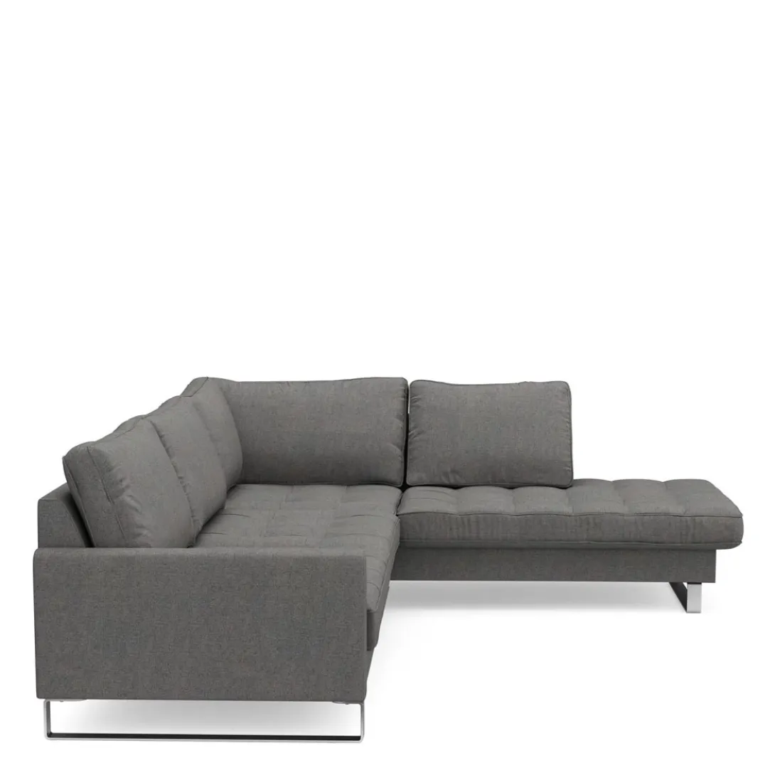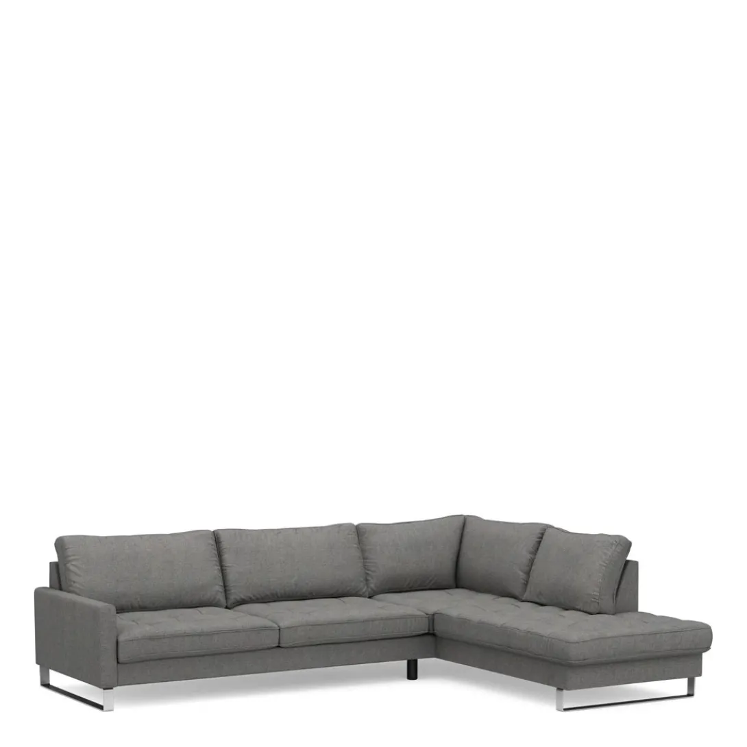 De chaise longue kan links, maar ook rechts. Net wat goed staat in de living. Deze is rechts gepland, en biedt de vermoeide mens een heerlijk plekje om bij te komen. Een powernap is zo geregeld. Deze bank met chaise is gemaakt van beukenhout, ijzer en polyester en is lekker robuust. Maar biedt heerlijk comfort. De bekleding is in verschillende materialen en kleuren te krijgen. De maat: 295 x 220 x 85 cm.