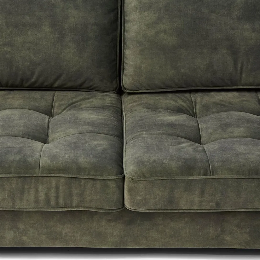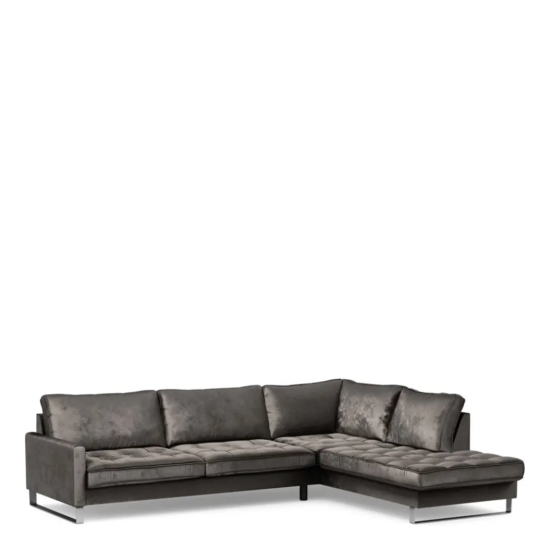 Deze bank met rechts een chaise longue wordt de favoriet in huis. Lekker een beetje suf op de bank liggen na een sportwedstrijd of een lange dag. Gestrekt op het zachte fluweel van de bekleding komt een mens dan weer helemaal bij. De bank is gemaakt van beukenhout, ijzer en polyester. Hij heeft een robuust uiterlijk, zit heerlijk en is er in verschillende materialen en kleuren. 295 x 220 x 85 cm groot.