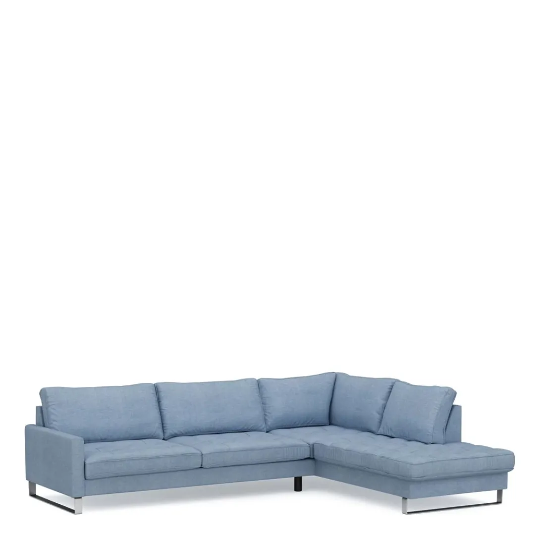 Deze luxe hoekbank met gecapitoneerde Chaise Longue en metalen onderstel heeft een strakke, frisse en moderne uitstraling. Een echte eyecatcher in uw interieur die ook nog eens ontzettend lekker zit. Verkrijgbaar in verschillende uitvoeringen en kleuren.