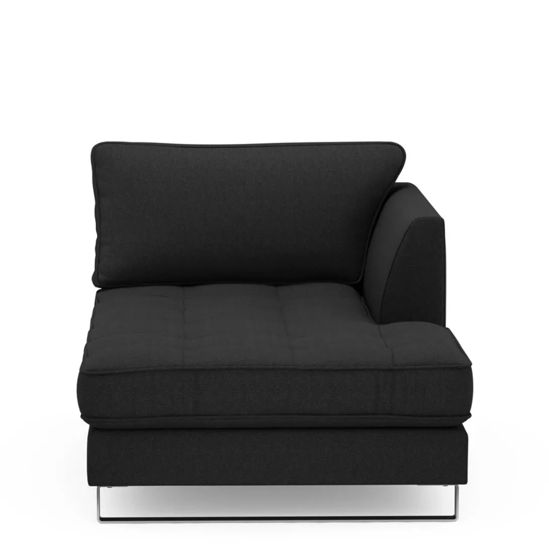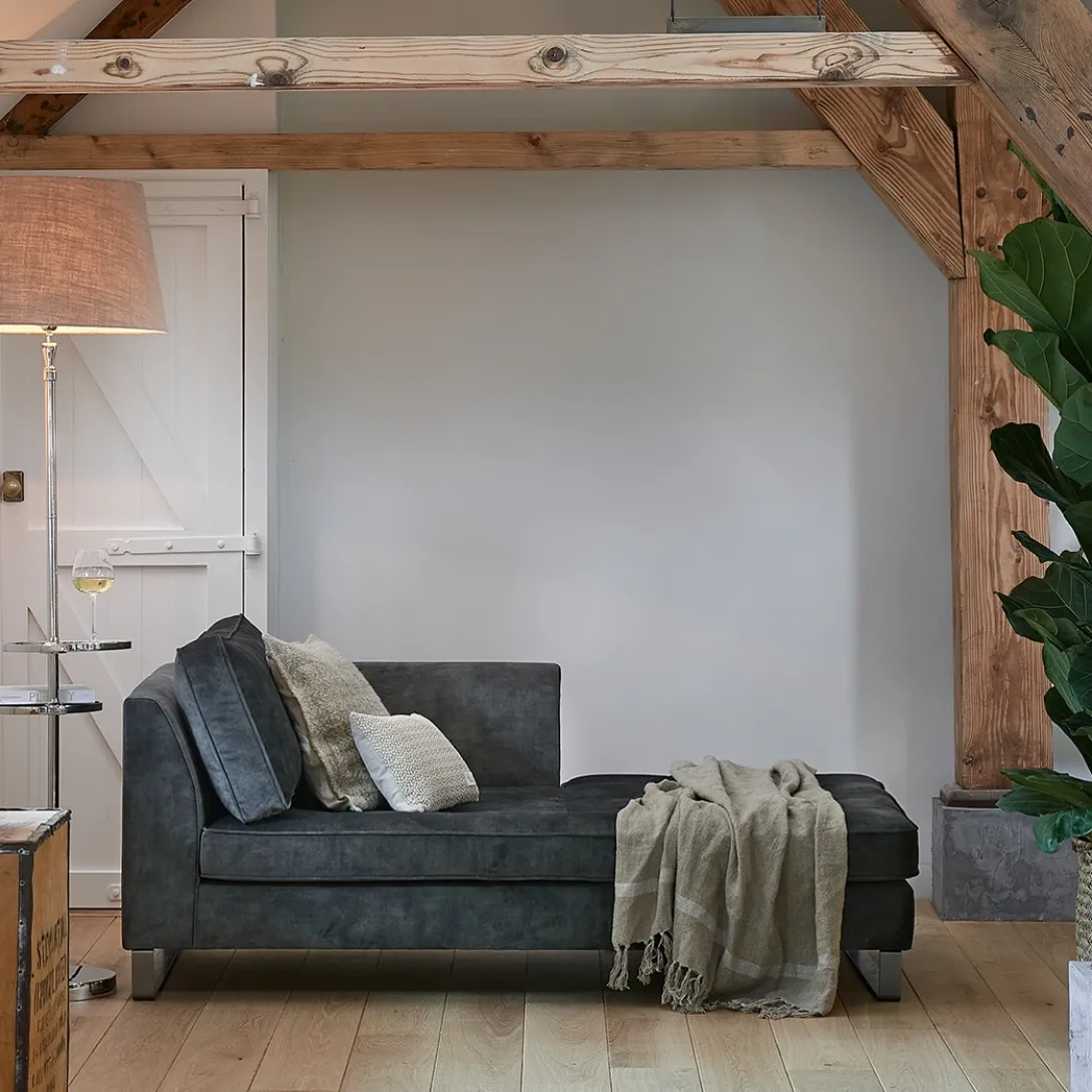 De chaise longue in deze serie is ook te krijgen met een bekleding van Oxford Weave. In verschillende kleuren, net als bij de andere bekledingen. Een rechteruitvoering past in uw zithoek als de andere elementen daarop aansluiten. De polyester bekleding is er in verschillende kleuren, passend bij de rest van de zithoek. Het onderstel is van ijzer en beukenhout.