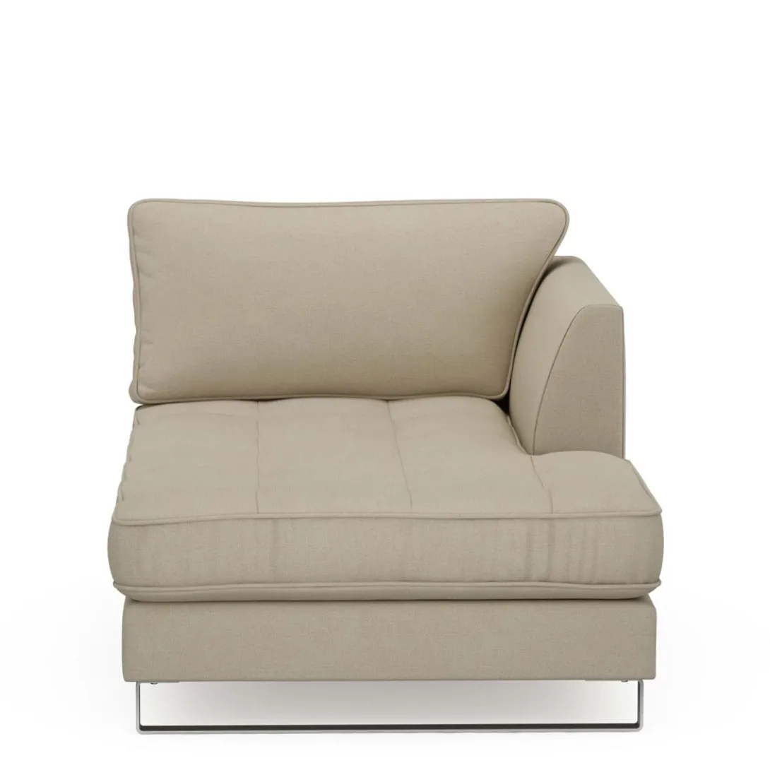De chaise longue in deze serie is ook te krijgen met een bekleding van Oxford Weave. In verschillende kleuren, net als bij de andere bekledingen. Een rechteruitvoering past in uw zithoek als de andere elementen daarop aansluiten. De polyester bekleding is er in verschillende kleuren, passend bij de rest van de zithoek. Het onderstel is van ijzer en beukenhout.