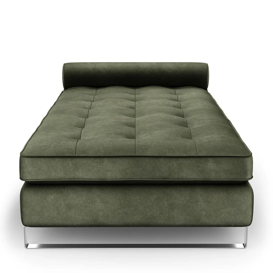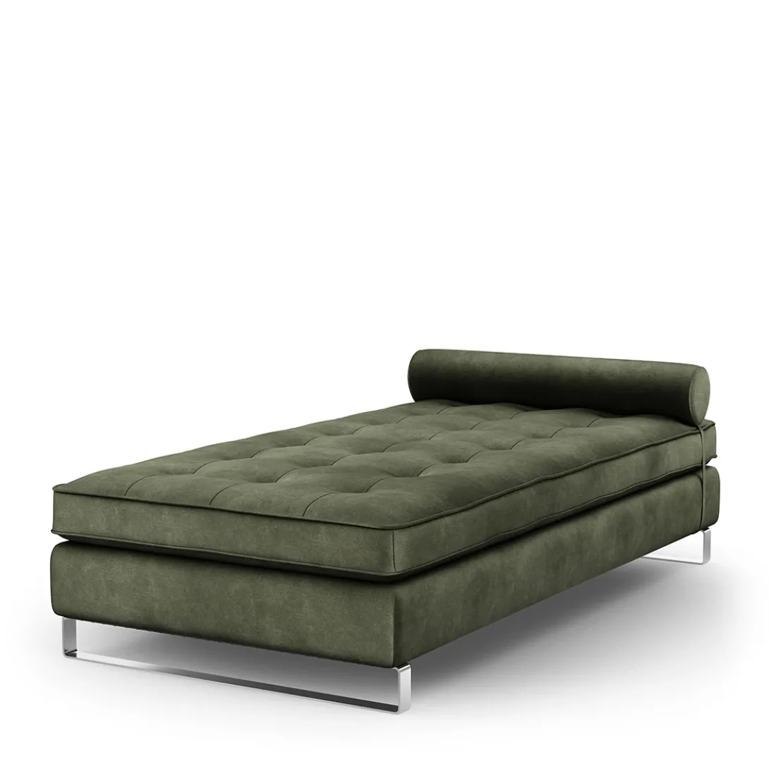 Lekker bijkomen op dit loungemeubel met heerlijke kussen. Dat wordt loten wie het eerst mag luieren. Het ‘dagbed’ heeft sledepoten die pas onder het meubel beginnen, dus je eraan stoten is er niet bij. De bovenkant is gecapitonneerd, waardoor het een eigentijdse look krijgt.
