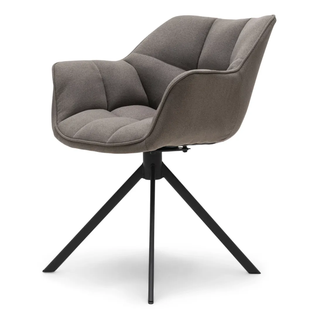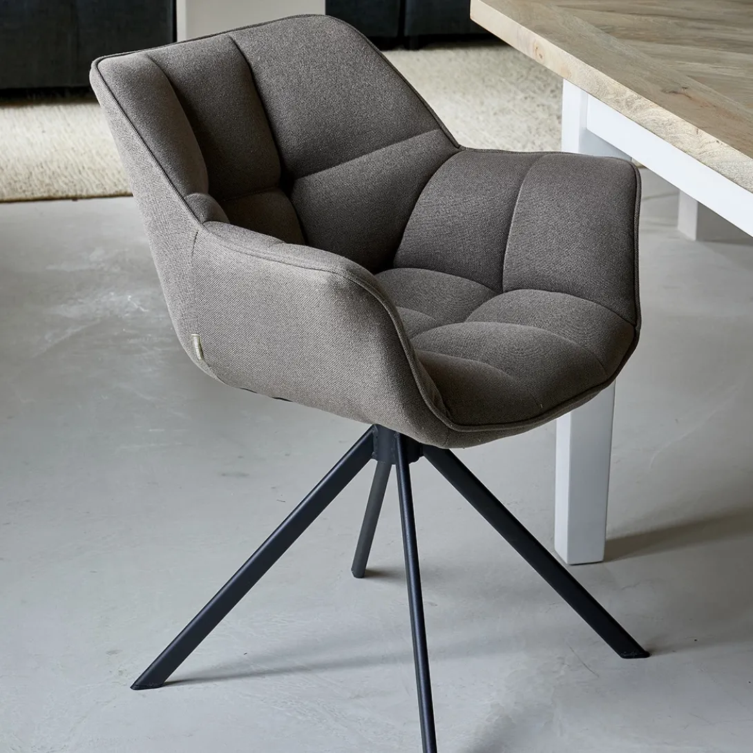 Onze favoriete stoel, de Carnaby eetkamerstoel, is er in nieuwe materialen en kleuren. De stoel heeft een industrieel onderstel. Dit onderstel is een 180 graden draaibare variant. Wanneer je opstaat, zal de stoel automatisch recht komen te staan. Deze nieuwe variant is in de stof Mouline Linnen en in kleur Light Flax.