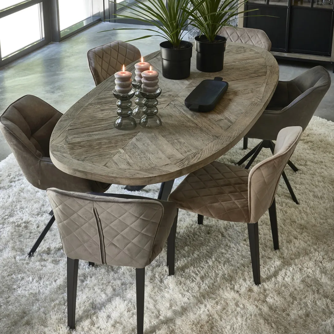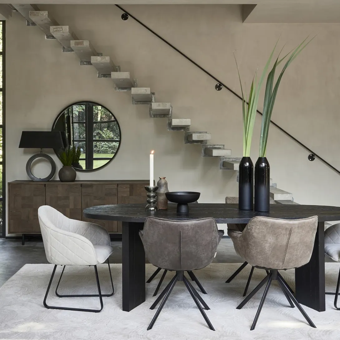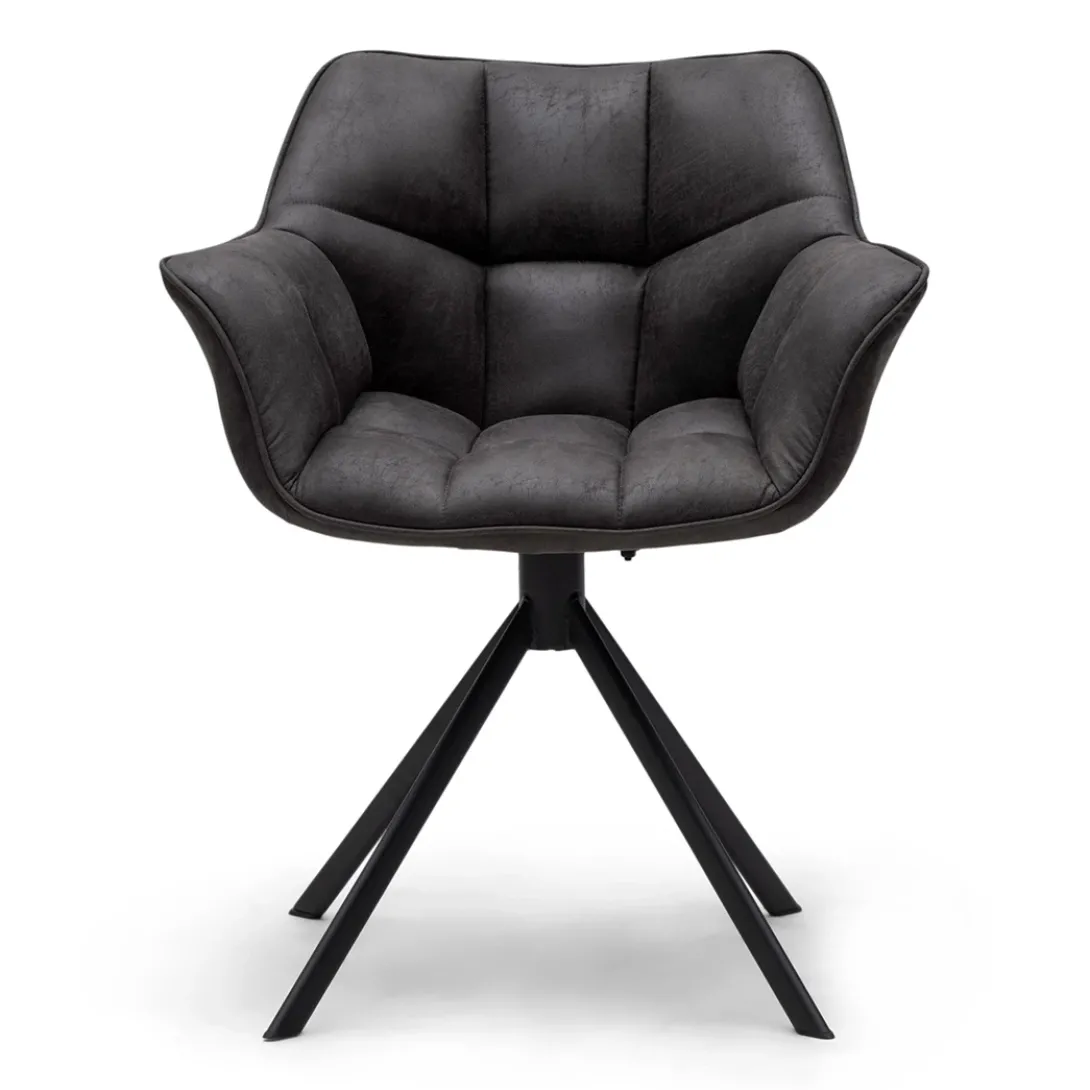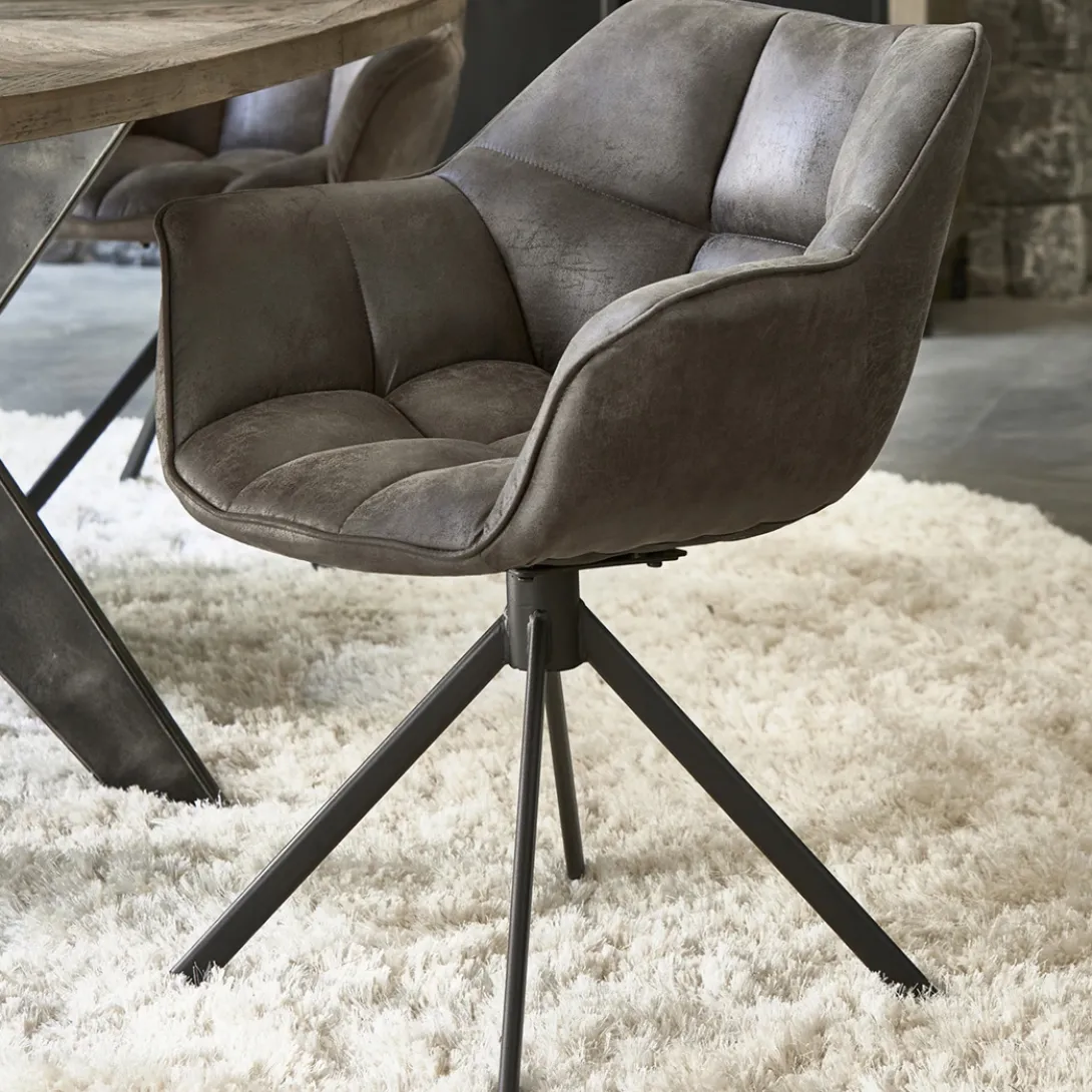 Zacht pellinileer kenmerkt de Carnaby Dining Armchair, prachtig gecapitonneerd en met fijne armleuningen. De metalen driepoot als onderstel geeft de stoel zijn elegantie. Uit deze stoel wil niemand meer opstaan, dus zorg voor een toetje en koffie na.