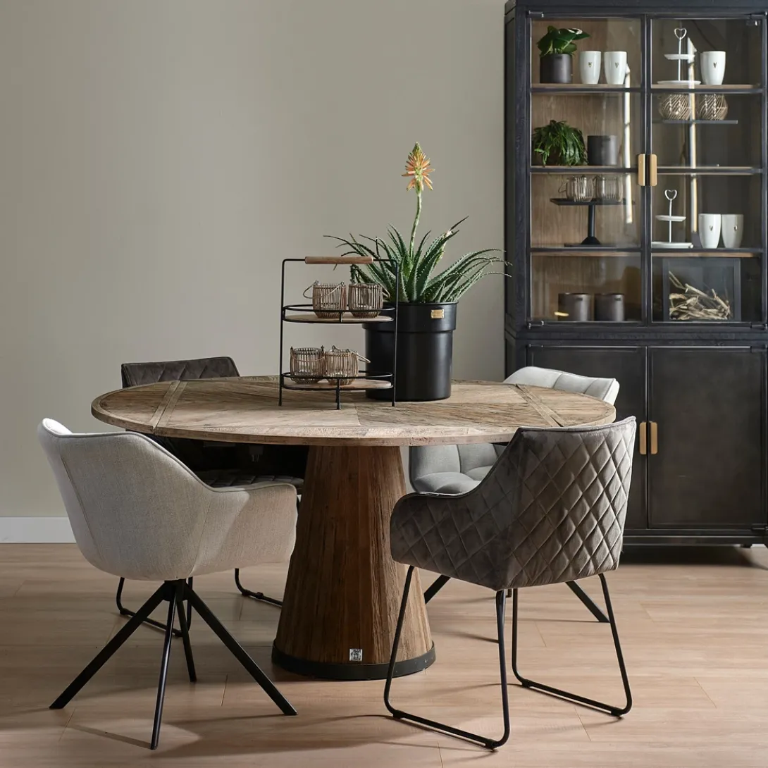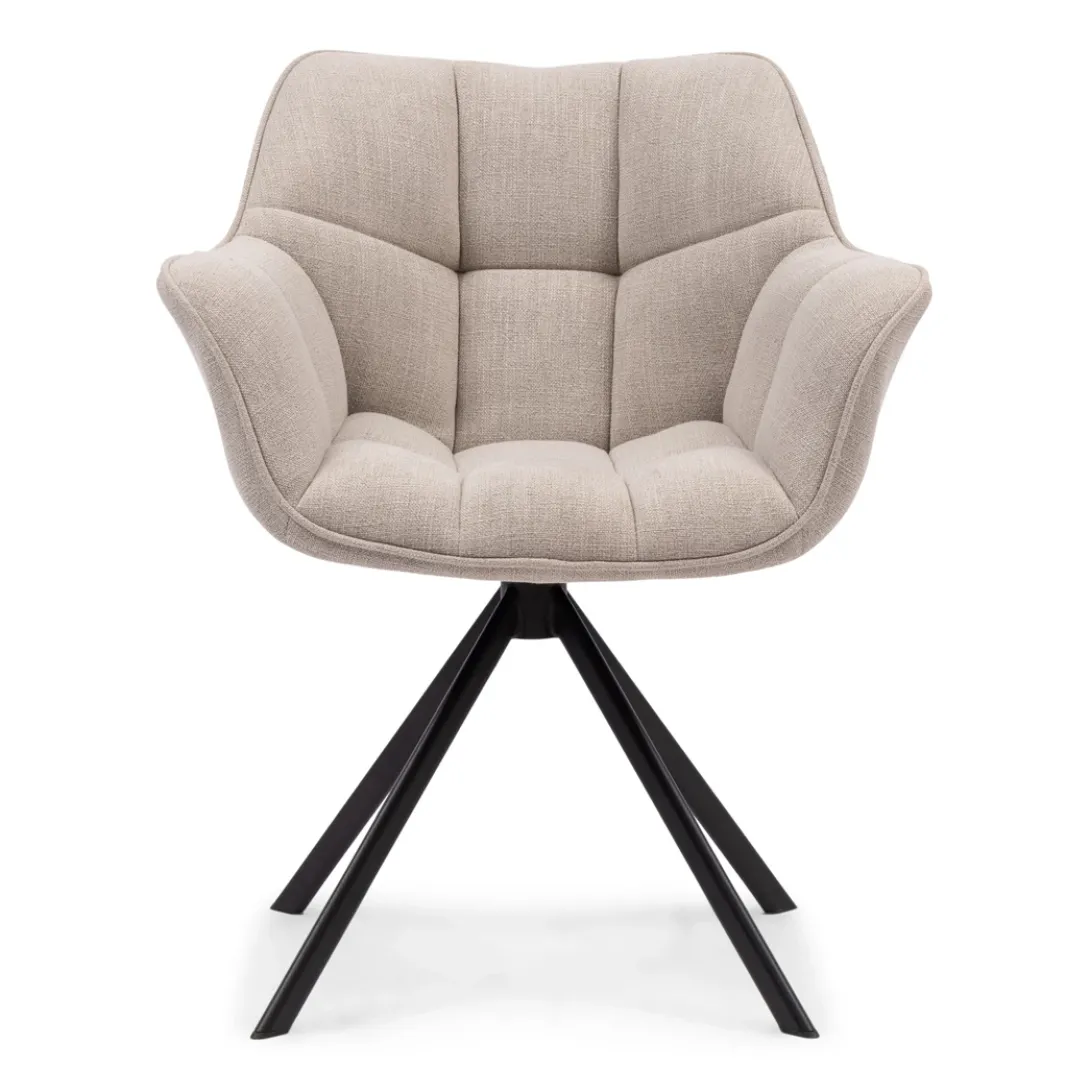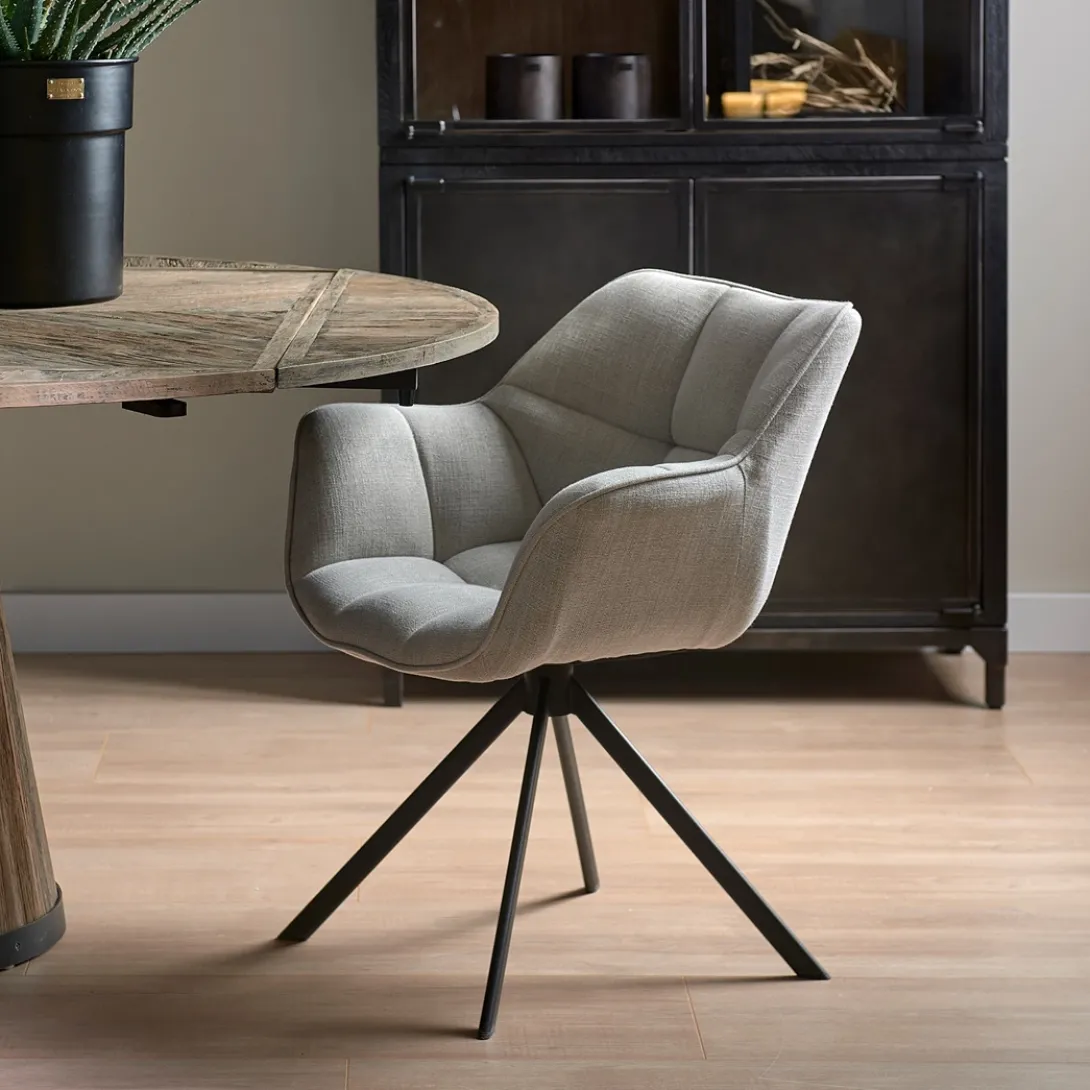 De Carnaby-eetkamerstoel heeft een doorgestikte zitting, waardoor de stof opbolt en je er na een lange dag comfortabel in kunt uitrusten. De poot van zwart gekleurd ijzer waaiert als een piramide onder de zitting uiteen. De Carnaby-eetkamerstoel is verkrijgbaar in verschillende kleuren en stofferingen.