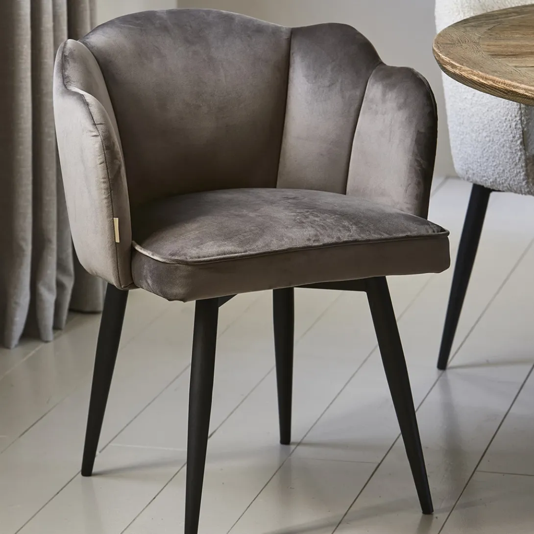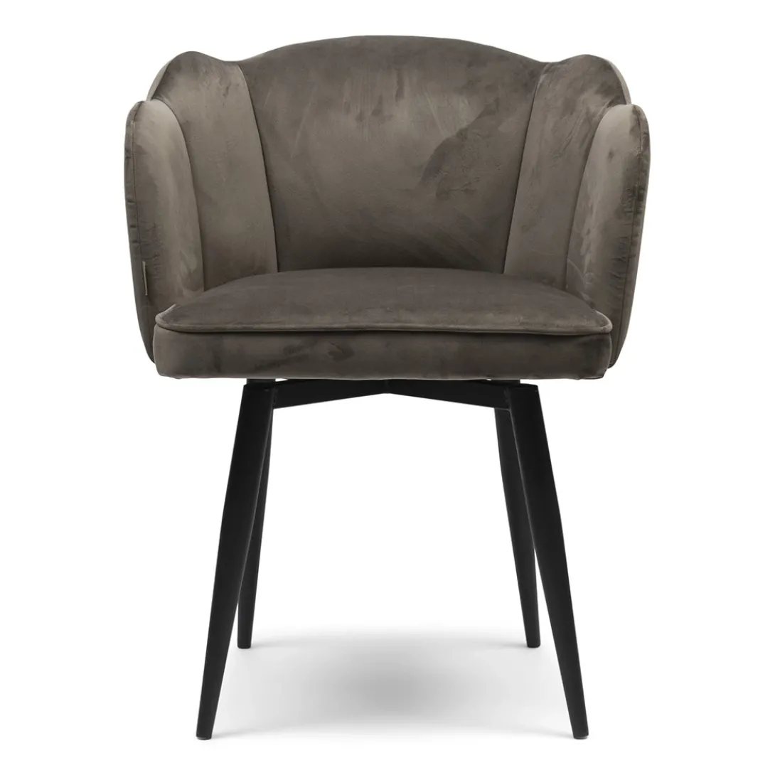Let’s bloom, de draaibare eetkamerstoel Dauphine, in Anthracite, Velvet stof geeft iedere ruimte een rijkere uitstraling! Met zijn draaibare poot en unieke bloemvormige rugleuning is dit echt een eyecatcher. Deze stoel is niet alleen mooi, maar ook praktisch en stevig. Voeg een vleugje moderne luxe toe aan je eetruimte met de Dauphine eetkamerstoel. Met de afmetingen van 66x68x88 cm past deze stoel mooi aan jouw eettafel.