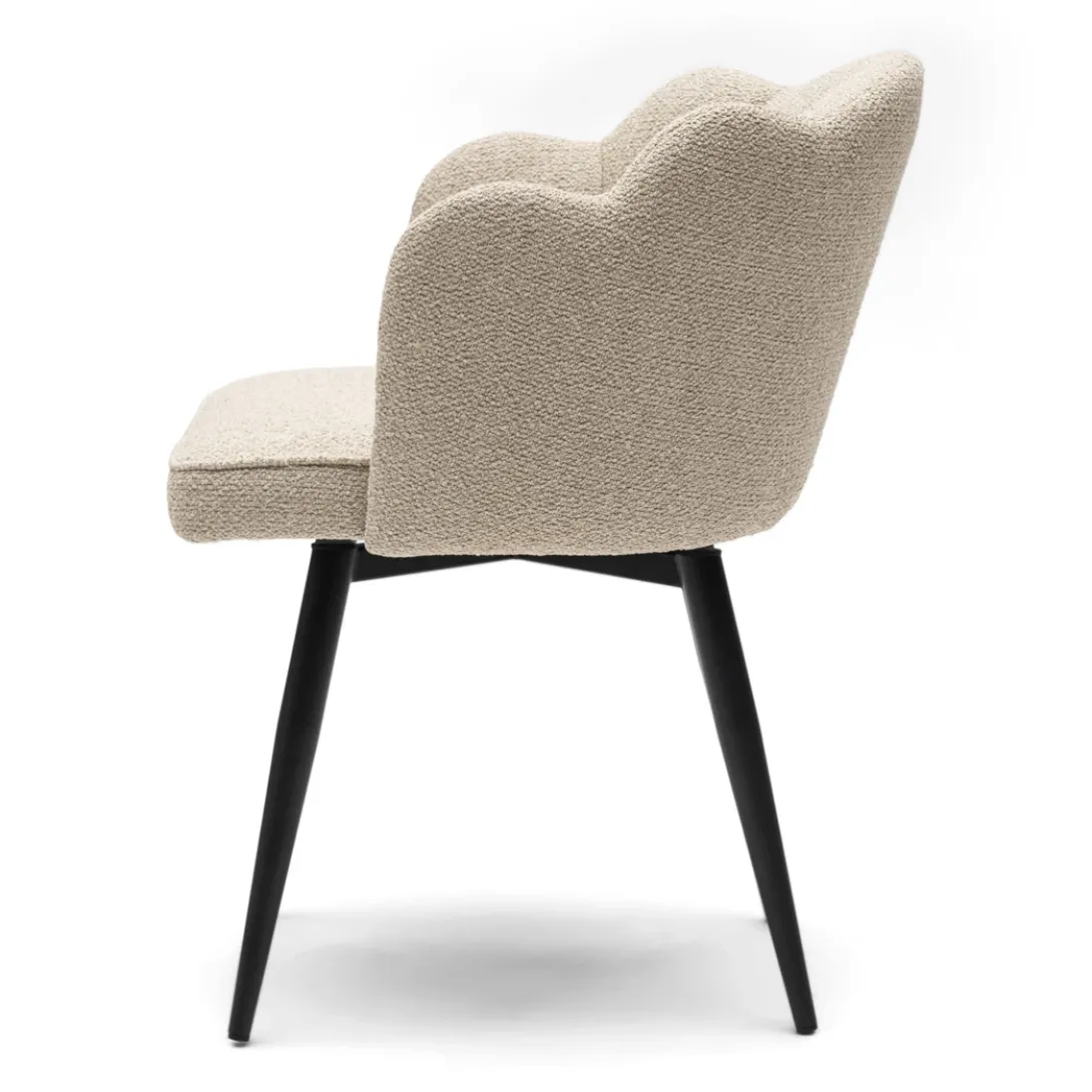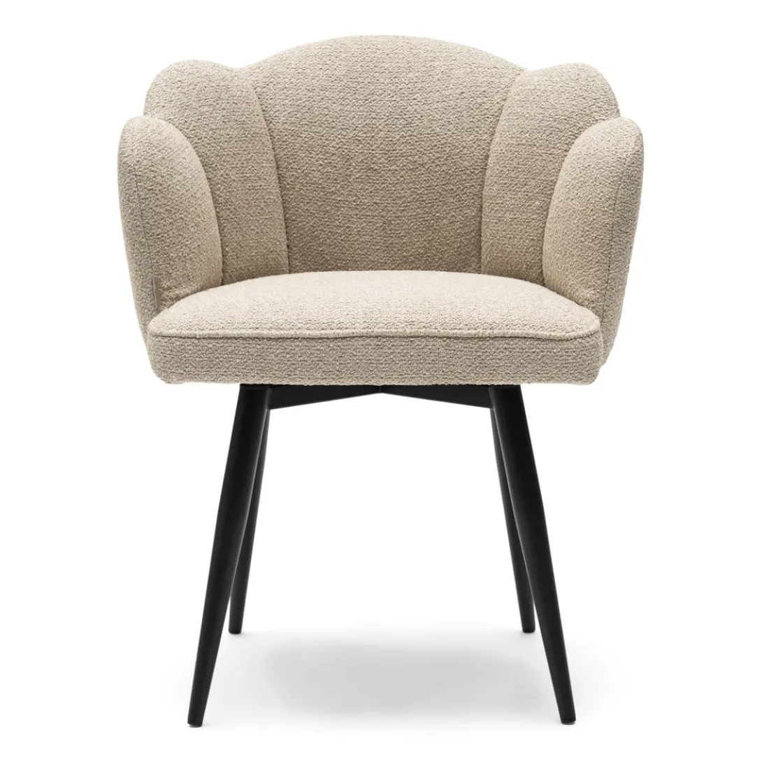 De draaibare Dauphine eetkamerstoel in natural grey is een stijlvolle aanvulling aan jouw eettafel. Gemaakt van zachte peluche boucle stof en voorzien van een unieke bloemvormige rugleuning, is deze stoel een ware eyecatcher. De draaibare poot biedt extra gemak, terwijl de stevige constructie zorgt voor langdurig comfort. Met afmetingen van 66x68x88 cm past de Dauphine perfect bij je eettafel, en voegt hij een vleugje moderne luxe toe aan je interieur. Maak je eetruimte compleet met deze elegante stoel die functionaliteit en design moeiteloos combineert.