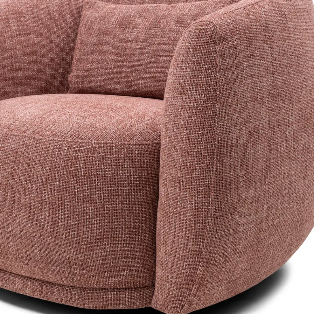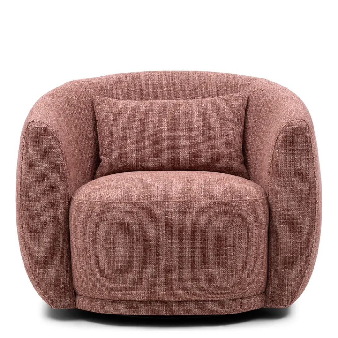 - Deze draaibare fauteuil met armleuningen biedt zowel ultiem comfort als stijl. Dankzij de ronde vormen, de rijke stof en de zachte zitting ervaar je een luxe zitervaring in elke ruimte. De draaifunctie zorgt voor flexibiliteit in je zitpositie, terwijl de armleuningen extra ondersteuning en een gevoel van luxe bieden. Perfect voor een ontspannen leeshoek of een gezellige zithoek in je woonkamer.