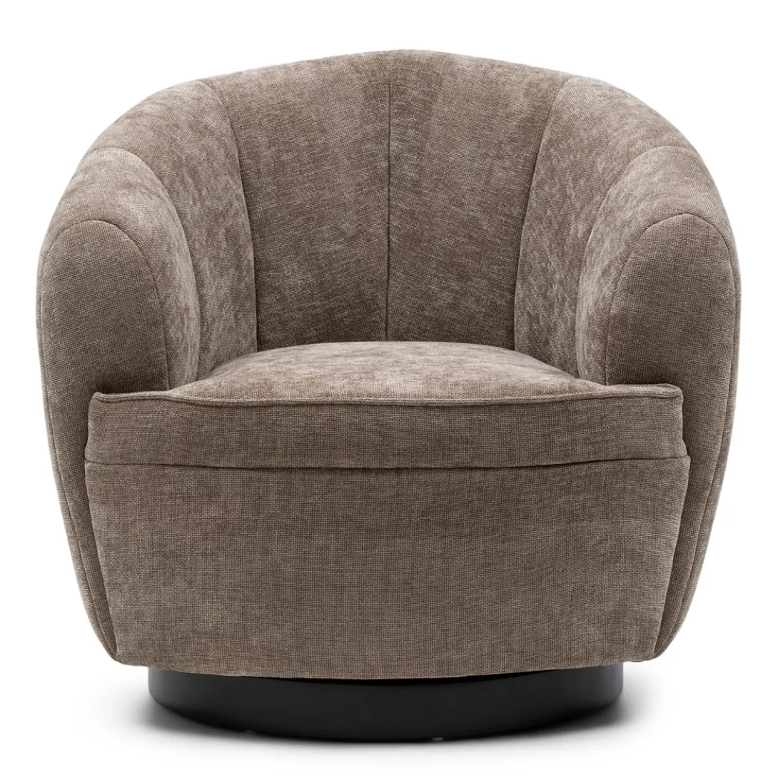 - De Countesse fauteuil is in een nieuw jasje gestoken met een nieuwe hoogwaardige stof die luxe uitstraalt. De ronde rugleuning loopt naadloos over in de armleuningen, terwijl de verticaal gestikte lijnen een elegante bolling creëren, waardoor er stijlvolle banen in de rugleuning ontstaan. Het moderne lijnwerk accentueert de esthetiek van de stoel. Als kers op de taart heeft deze fauteuil een ronde, draaiende poot van rubberhout die tot de grond doorloopt, waardoor je de stoel 360 graden kunt draaien.